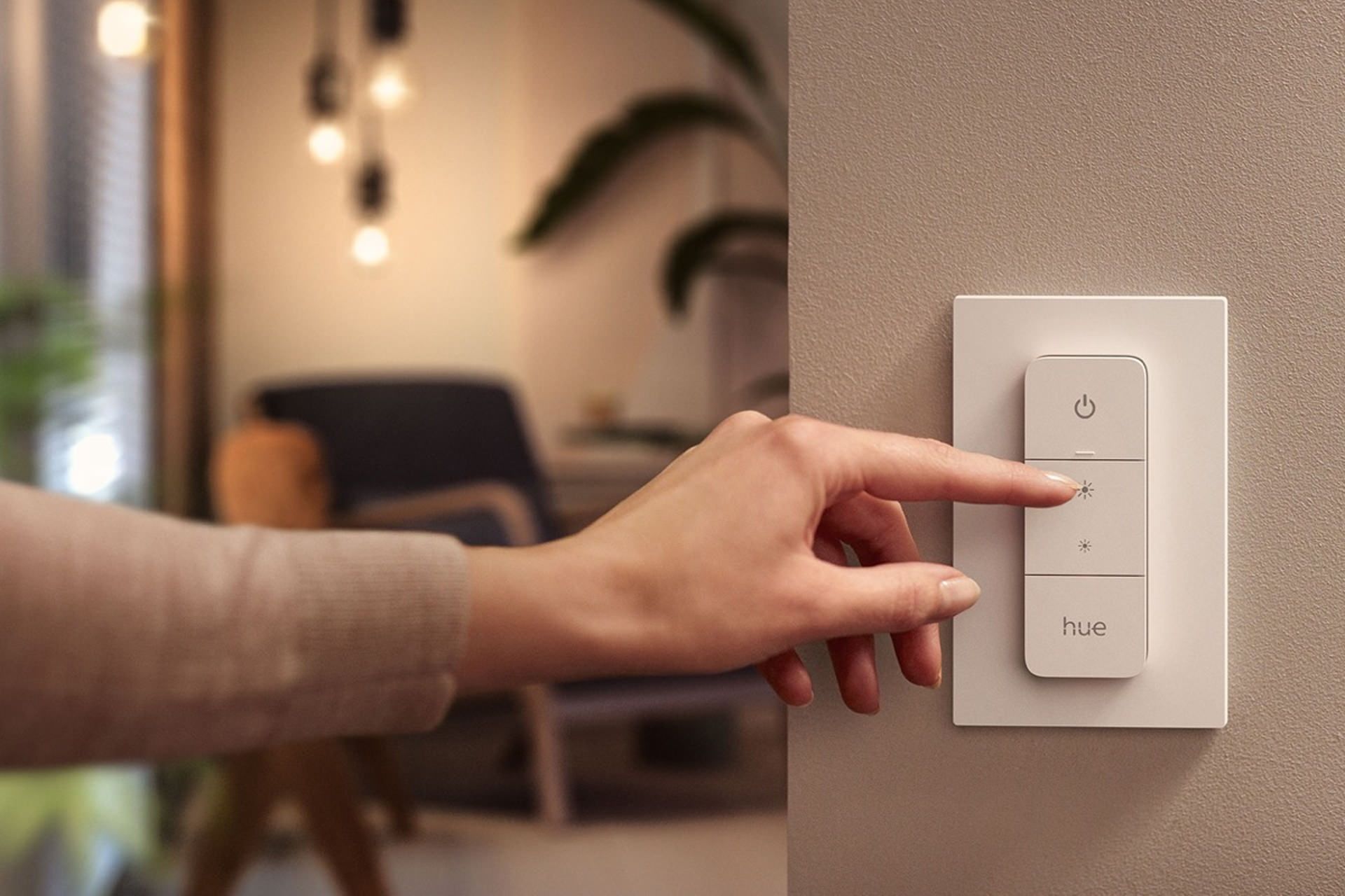 سومین محصول، نسخهی بهبودیافتهی دیمر مغناطیسی Philips Hue محسوب میشود. این دیمر صفحهی دیواری قابل تعویض دارد و به کاربر امکان میدهد نورپردازی محصولات هیو را بدون نیاز به اپلیکیشن کنترل کند.