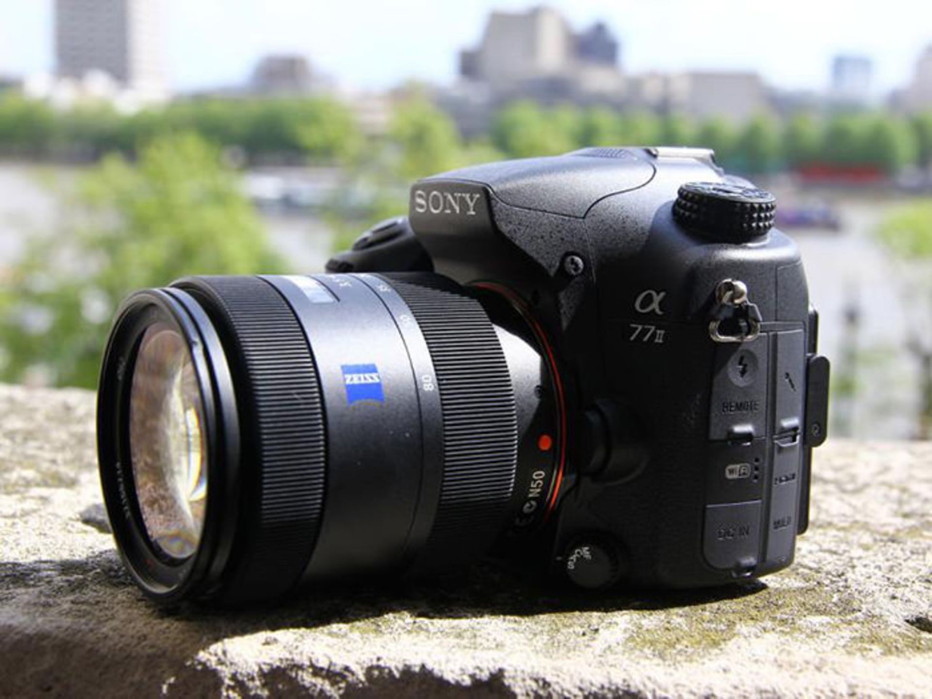 سونی a77 II محصول غول تکنولوژی ژاپن در این رده از دوربینها است که به سنسور ۲۴.۳ مگاپیکسلی APS-C مخصوص سونی با نام Exmor در کنار پردازندهی BIONZ X مجهز شده است. سونی از معماری سری SLT خود در a77 II بهره برده است در این معماری از آینهی نیمه شفاف استفاده شده که نور را همواره به سنسور میرساند. این مساله بدین معنی است که با وجود ابعاد مشابه نمونههای DSLR، این دوربین از منظرهیاب الکترونیکی برخوردار است. بدین ترتیب سیستم فوکوس خودکار همواره میتواند شرایط را بررسی کرده و سرعت این عملیات را ارتقا دهد. البته باید به این موضوع نیز اشاره کرد که در این سیستم مقداری از نور محیط به سنسور نخواهد رسید و عملکرد دوربین در شرایط نوری ضعیف را تحت تاثیر قرار خواهد داد.