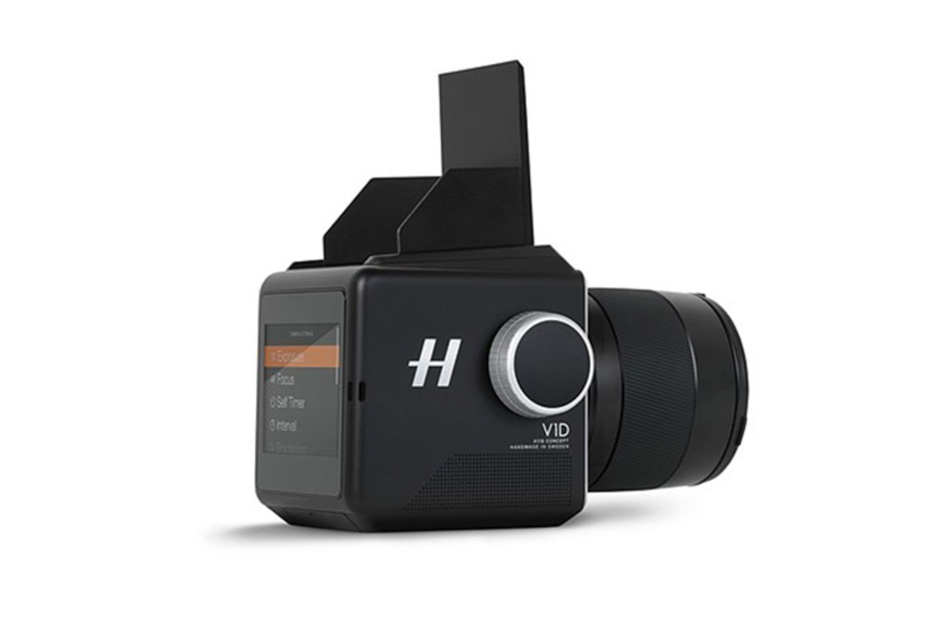 دوربین V1D به همراه لنز 45 میلیمتری با F3.5 به نمایش درآمده است. انتظار میرود لنزهای دوربین بدون آیینهی X1D با آداپتور به این دوربین متصل شود. این دوربین قابلیت اتصال ماژولهای مختلف در هر ۴ طرف را دارد تا امکان اتصال ماژولهای مختلف برای ارتقاء یا افزایش کارایی دوربین وجود داشته باشد.