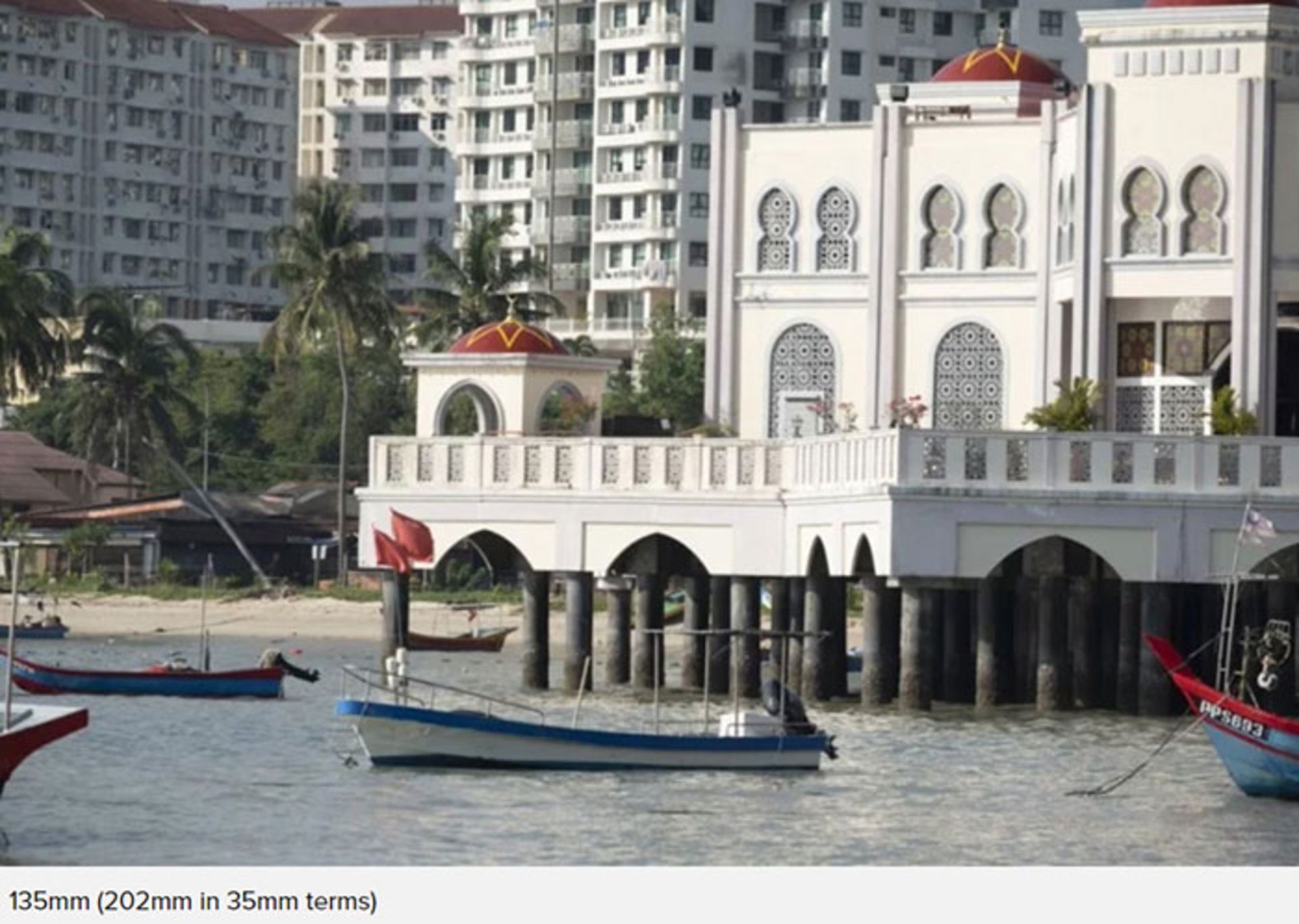 پس قبل از اینکه به تعریف مفهوم فشردهسازی بپردازیم باید کمی بیشتر درباره مفهوم اختلاف منظر صحبت کنیم. برای آزمایش اختلاف منظر چند عکس از یک مسجد ساختهشده روی آب ثبت کردهایم. این مسجد بهطور مستقیم روی آب قرار ندارد بلکه روی تعداد زیادی ستون که درون آب هستند، ساخته شده است. ابتدا چند عکس از این مسجد گرفته شد که در هر عکس روی نقطه مشخصی از تصویر فوکوس شده است.