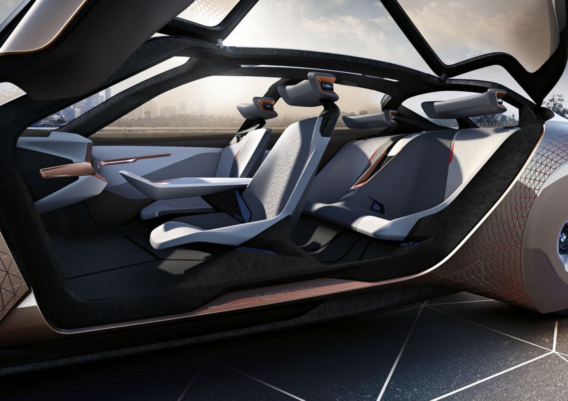 طرح مفهومی جدید آنقدر از المانهای طراحی BMW برخوردار است که حتی اگر از گوشه چشم هم به آن نگاهی بیندازید، بازهم متوجه میشوید که با طراحی BMW رو به رو هستید. با این حال به خوبی میدانیم که این ظاهر ماشینها به آیندهای دور مربوط است. تمام شیشه جلوی ماشین مجهز به واقعیت افزوده است. روی داشبورد جلویی ماشین، ۸۰۰ مثلث کوچک نقش بستهاند که BMW آن را هندسه زنده (Alive Geometry) مینامد. این ظاهر چندرنگ پلیکانی به صورت مستقیم با راننده در طی حرکت ماشین ارتباط برقرار میکند.