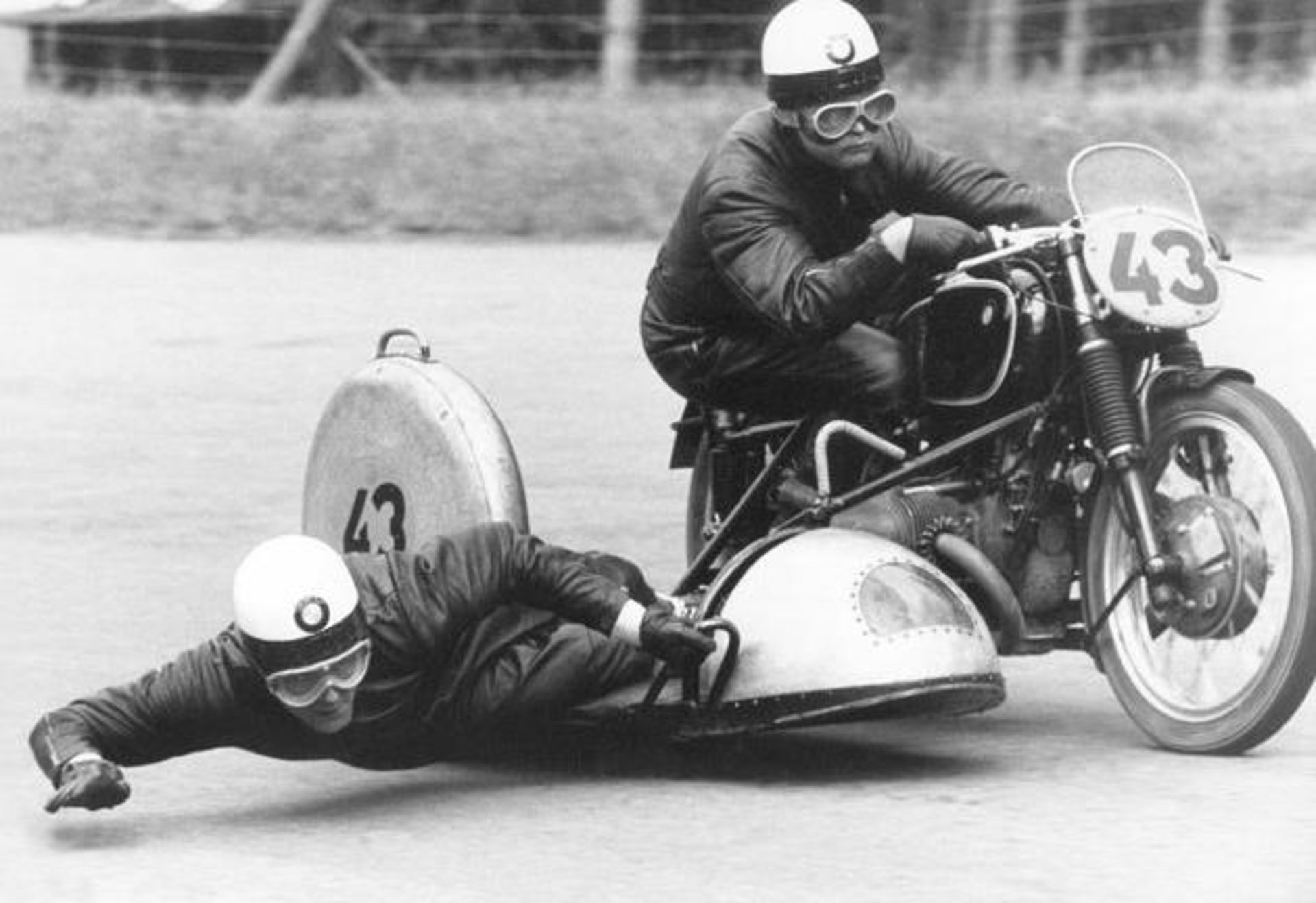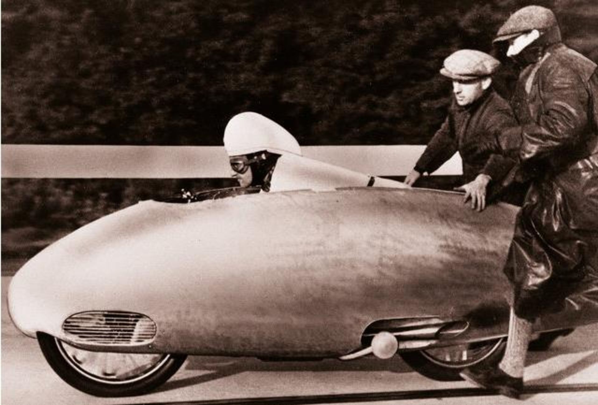 ایدهی کج کردن موتورسیکلت برای افزایش توانایی عبور آنها در طی مسیر مسابقه قدمتی به اندازهی خود موتورسیکلتها دارد و این مورد اختراع بیامو نیست . اما این طور که بهنظر میرسد رانندگان این موتورسیکلتهای بیامو مشکلاتی در قسمت بادامهی مغز خود داشتهاند. در این عکس، این مرد دیوانه هیچ محافظی برای صورت خود به جز عینک ندارد.