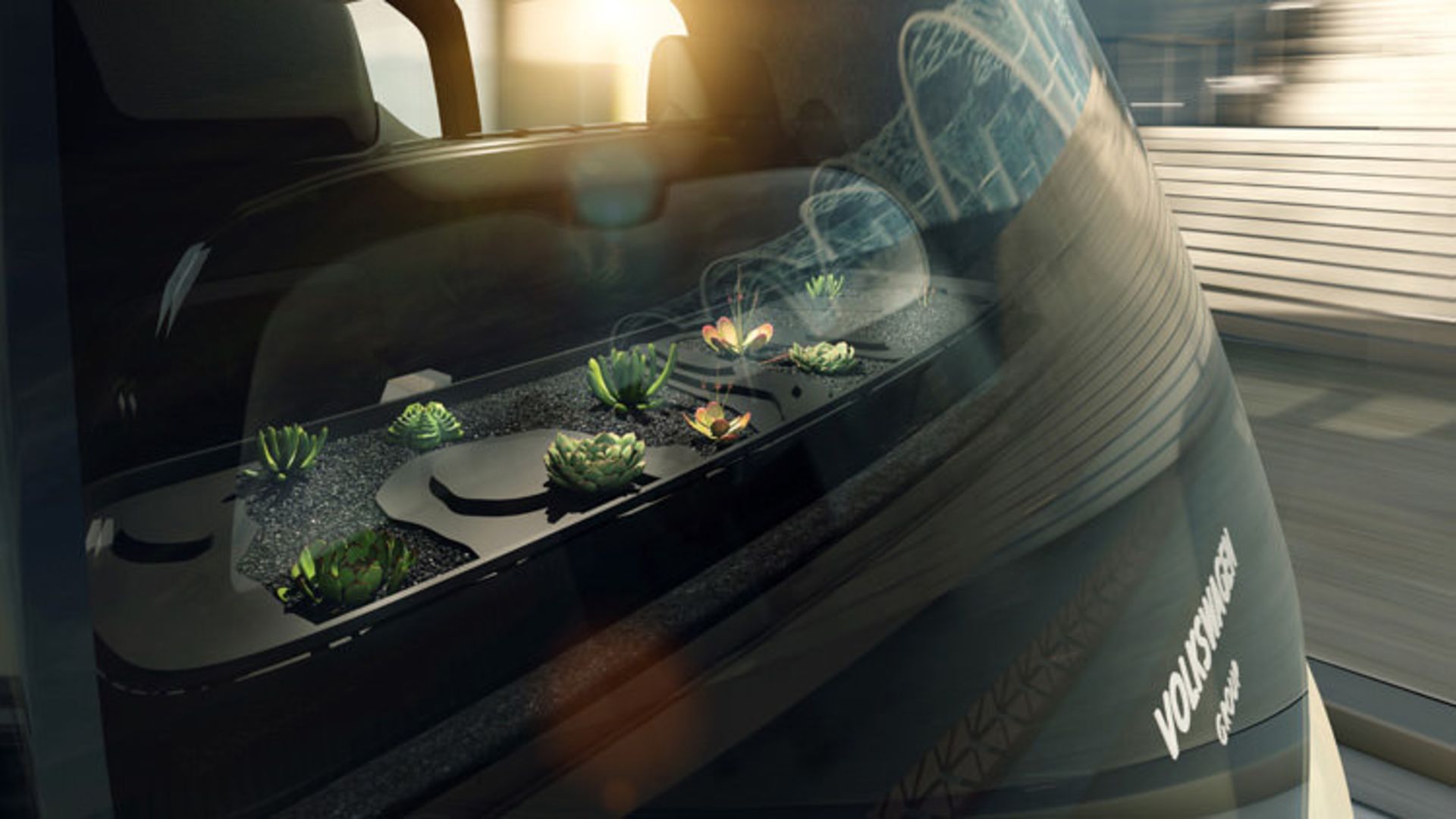 در داخل خودرو فضای بسیار بزرگی به چشم میخورد که این روزها در بین خودروهای مفهومی رواج یافته است. فضای داخلی این خودرو بسیار جادار طراحی شده و دید بسیار خوبی به سرنشینان میدهد. در کف این خودرو نیز از چوب استفاده شده است تا حس اتاق مخصوص جلسات را القا کند. در دو سمت خودرو دو صندلی وجود دارد و هیچ کنترلی وجود ندارد تا سرنشینان را سردرگم کند و باعث شلوغی کابین شود. گیاهان موجود در پشت شیشهی عقب به تمیز کردن هوای داخل کابین کمک میکنند. آیا با وجود این گیاهان احساس آرامش بیشتری نمیکنید؟