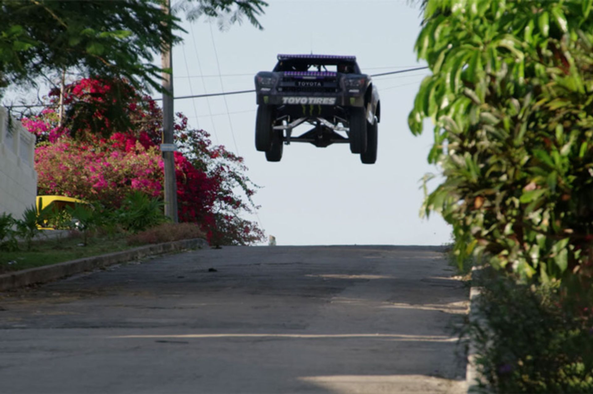 در این ویدیو، بالدوین کامیونت آفرود را در شهر هاوانا با سرعت میراند و حرکات نمایشی شامل پرش و دریفت انجام میدهد؛ بهطور کلی شاهد حرکات جسورانه و آشفته هستیم. آنچه در این ویدیو دیوانهوار به نظر میرسد، سیستم تعلیق نرم خودرو است که به لطف آن، شاهد رانندگی نرم و قابل کنترل خودرو توسط بالدوین در مواجهه با موانع هستیم. همچنین به نظر میرسد ضربات و تکانها بهندرت به راننده منتقل میشود؛ حتی در پرش ۵۸.۲ متری از ورودی کوچک اقیانوس، اینگونه به نظر میرسد که بالدوین روی یک ابر نرم فرود میآید.