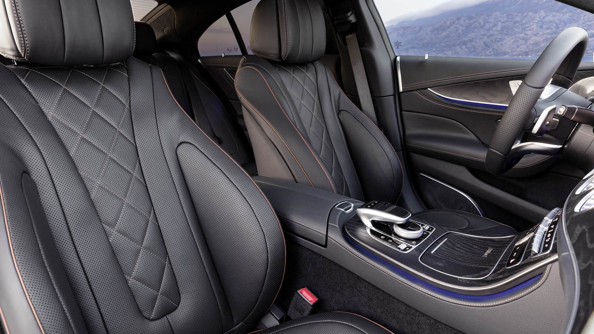 طراحی اتاق عمدتا از سدان E-Class گرفته میشود؛ اما واگنر میگوید تیم طراحی هنوز هم قصد داشت تغییرات بیشتری در فضای داخل ایجاد کند. بهعنوان مثال دریچههای هوا طراحی منحصربهفردی دارند که در تیم مرسدس ظاهر «اگزوز جت» نامیده میشود. استفاده از چوب واقعی، چرم دوختهشده و فلزاتی که هنگام لمس کردن سرد به نظر میرسند، کمک میکند احساس خوبی از فناوریهای خودرو به سرنشینان منتقل شود.