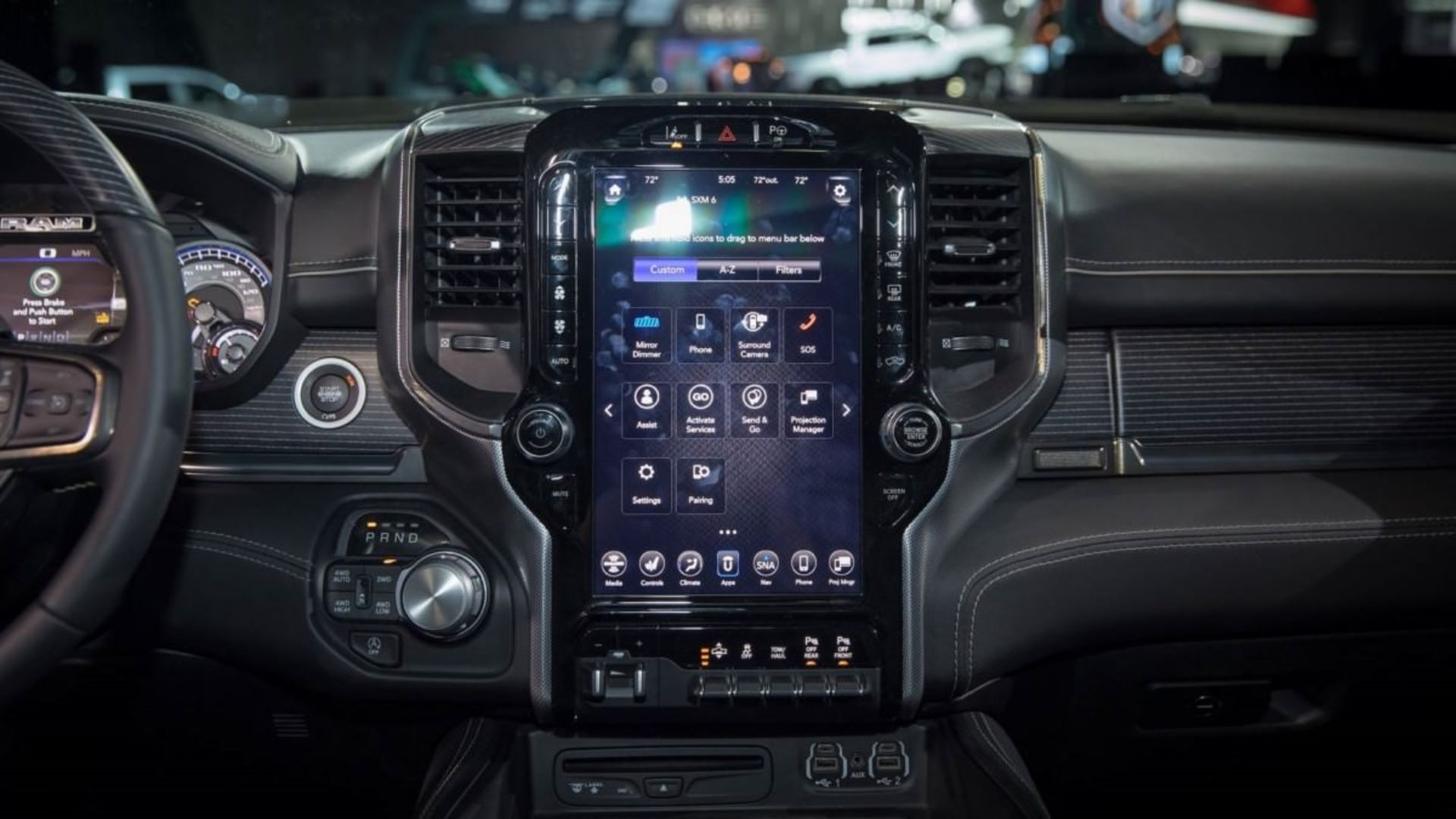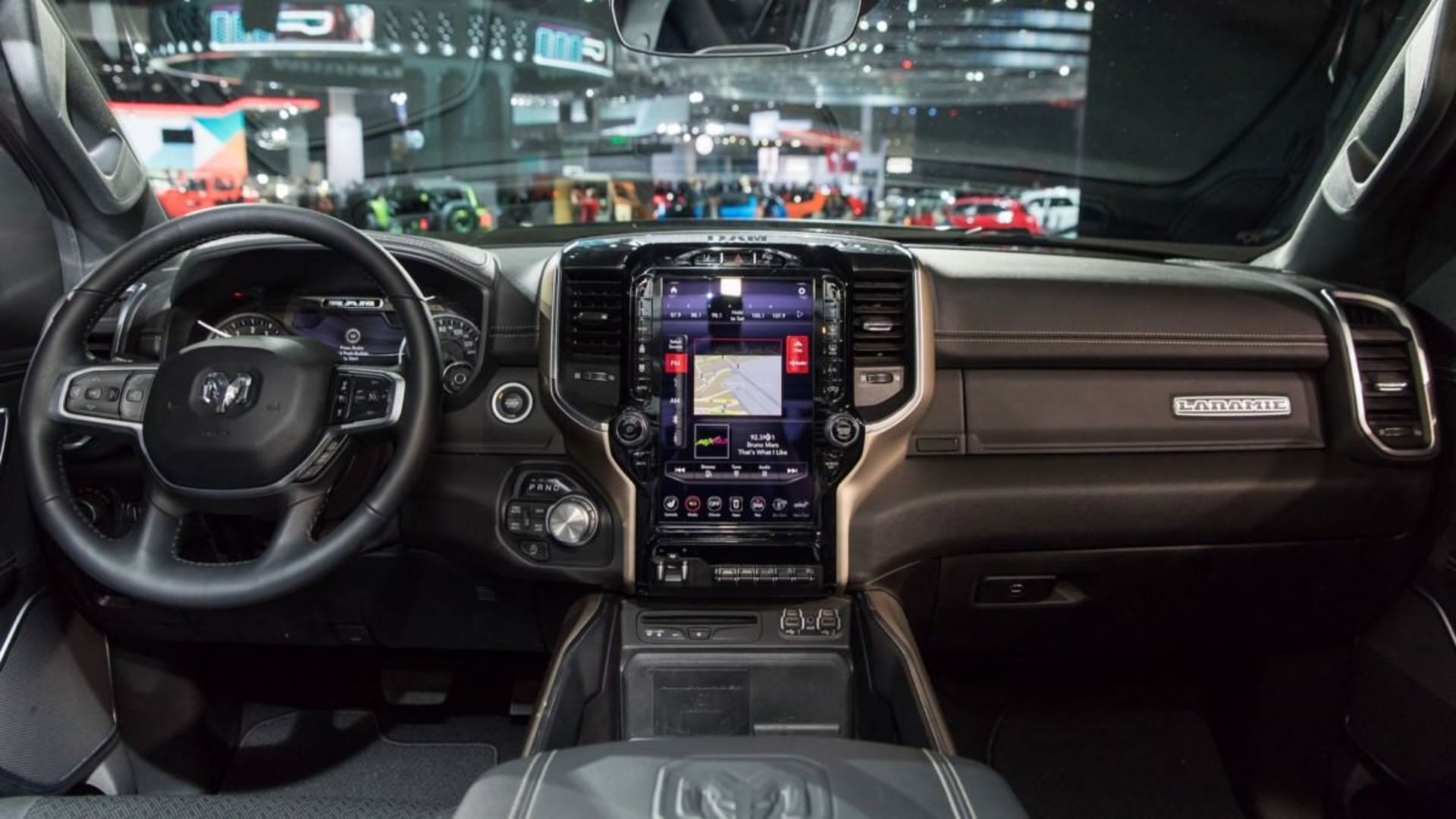 صفحه نمایش نصبشده در کابین رم ۱۵۰۰ از آخرین ورژن سیستم Uconnect گروه فیات کرایسلر است. جدیدترین آپشنها در این بخش را باید صفحه نمایش عمودی ۱۲ اینچی دانست. همچنین سیستم رهیاب ماهوارهای در این صفحه نمایش وجود دارد و نقشهی آن تنها با یک لمس قابلیت زوم دارد. این صفحه نمایش همچنین با اندروید اتو و اپل کار پلی نیز سازگار است و حتی می توان تنظیمات سیستم تهویه مطبوع را از درون آن انجام داد. از دیگر آپشنهای رم ۱۵۰۰ مدل ۲۰۱۹ باید به قابلیت هات اسپات وایفای اشاره کرد. سیستم کنترل از راه دور SiriusXM نیز روی این خودرو نصب است که راننده با این سیستم میتواند خودرو را با استفاده از یک اپلیکیشن در تلفن همراه هوشمند خود از راه دور باز و بسته کند و حتی موتور خودرو را روشن کند.