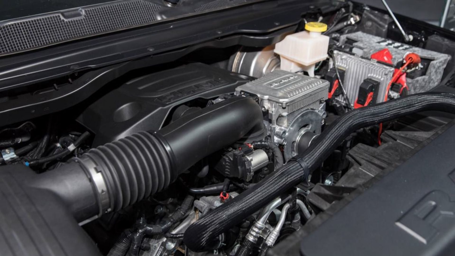 در کنار تمامی تغییرات برای کاهش وزن و بهبود آیرودینامیک این خودرو، رم ۱۵۰۰ جدید به سیستم مولد قدرت هیبریدی نیز مجهز شده است. این خودرو بهصورت استاندارد به پیشرانهی V6 به حجم ۳.۵ لیتر مجهز است و در صورت نیاز میتوان پیشرانهی V8 به حجم ۵.۷ لیتر را برای آن سفارش داد. در کنار پیشرانهی بنزینی این خودرو سیستم استارتر ۴۸ ولتی با نام E-Torque نیز نصب شده است که میتواند در سرعتهای پایین نیروی خود را به چرخها انتقال بدهد و به شتابگیری بهتر خودرو کمک کند. این سیستم هیبریدی درست مشابه آن است که قبلا در جیپ رانگلر دیده بودیم. برای تأمین نیروی مورد نیاز سیستم هیبریدی، از پک باتری لیتیوم-یون با ظرفیت ۰.۴۳ کیلووات ساعت بهرهگیری شده که در پشت صندلیهای عقب جاسازی شده است و با استفاده از هوای داخل کابین خنک میشود.