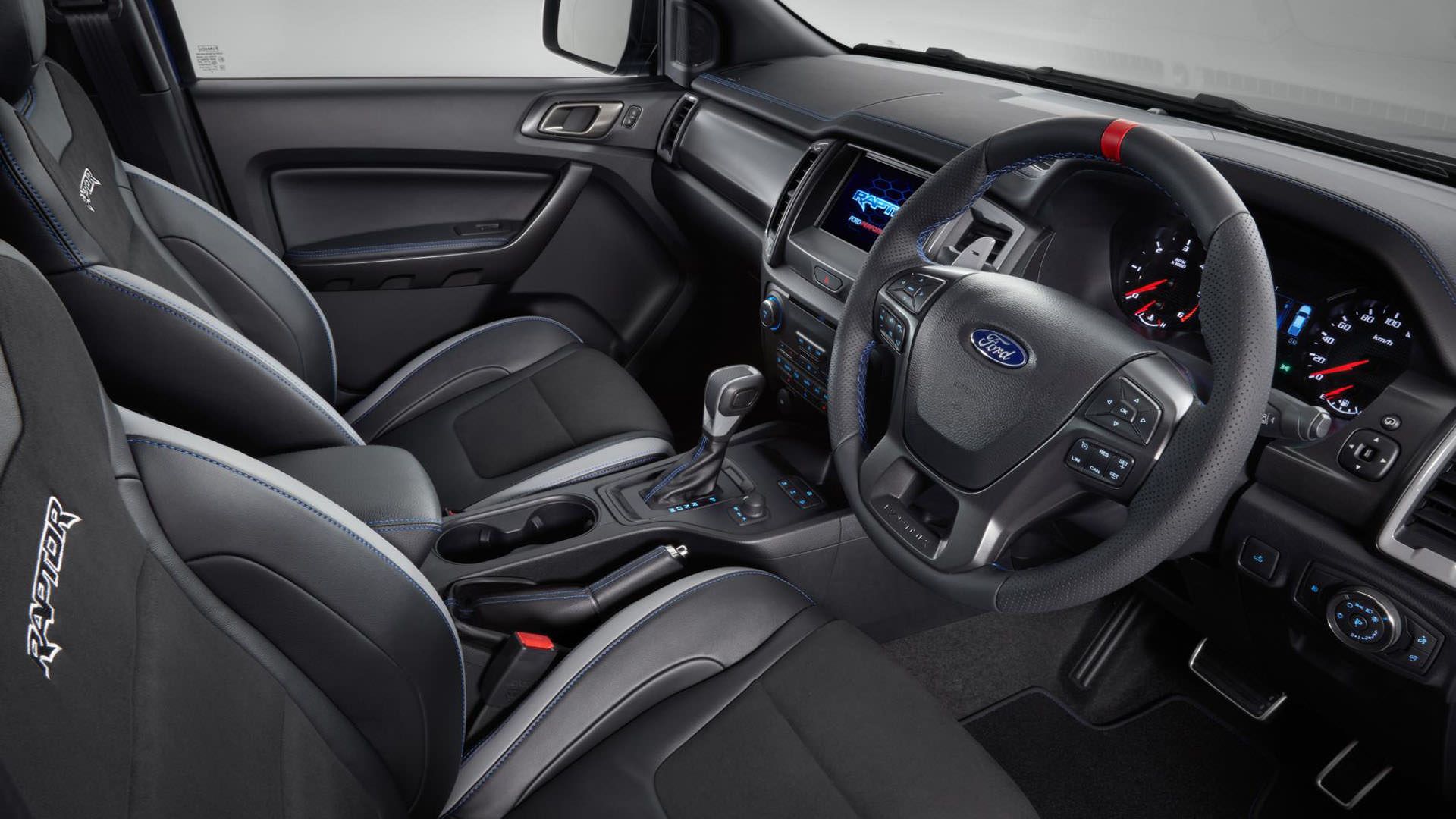 از لحاظ الکترونیکی، در وانت پیکآپ فورد رنجر رپتور از سیستم فرمان صوتی فورد سینک ۳ برای کنترل پایداری خودرو، کنترل غلتزنی و چرخش، کنترل موجگیر تریلر، کمک استارت تپه، کنترل پایین آمدن از تپه، کنترل تطبیقی بار، فرمان قدرتی الکتریکی، دستیار نگهداری در مسیر حرکت و کنترل واژگونی استفاده شده است. سیستم ناوبری ماهوارهای (sat-nav) از جمله دیگر امکانات استاندارد وانت فورد است که به راننده کمک میکند در سفرهای آفرود گم نشود. ورود به وانت رنجر رپتور بدون کلید و روشن کردن خودرو از راه دور امکانپذیر است. طرح زیبا و امکانات قابل توجه در داخل خودرو همراه با روکش صندلیها از چرم جیر، فضای جذابی برای راننده و سرنشینان فراهم میکند.
