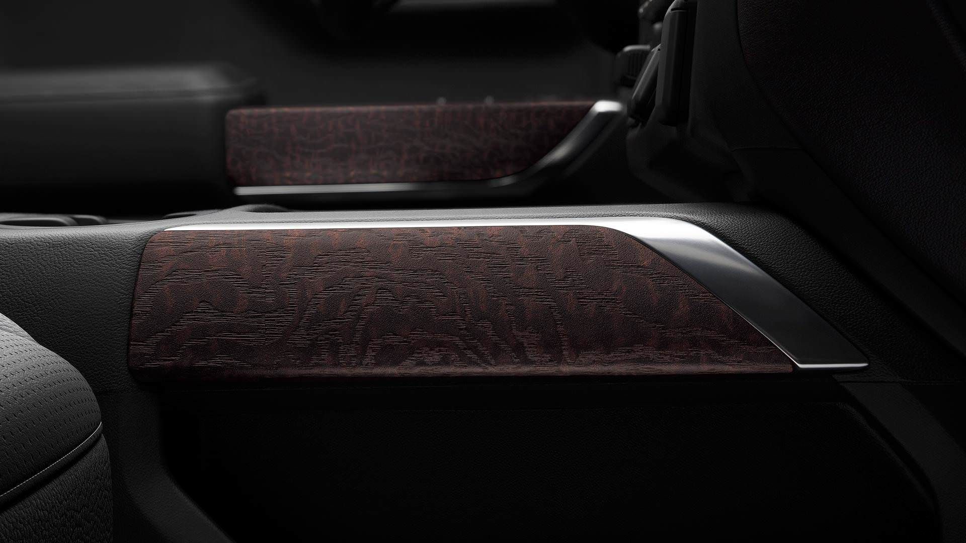 خریداران وانت پیکآپ سیرا نسخه دینالی همچنین از تزئینات لوکس مانند چرم گرانقیمت با دوخت متضاد بهرهمند میشود. استفاده از طرح آلومینیوم تیره و چوب نیز ظاهر مجلل و پرابهتی به فضای داخلی میبخشد.