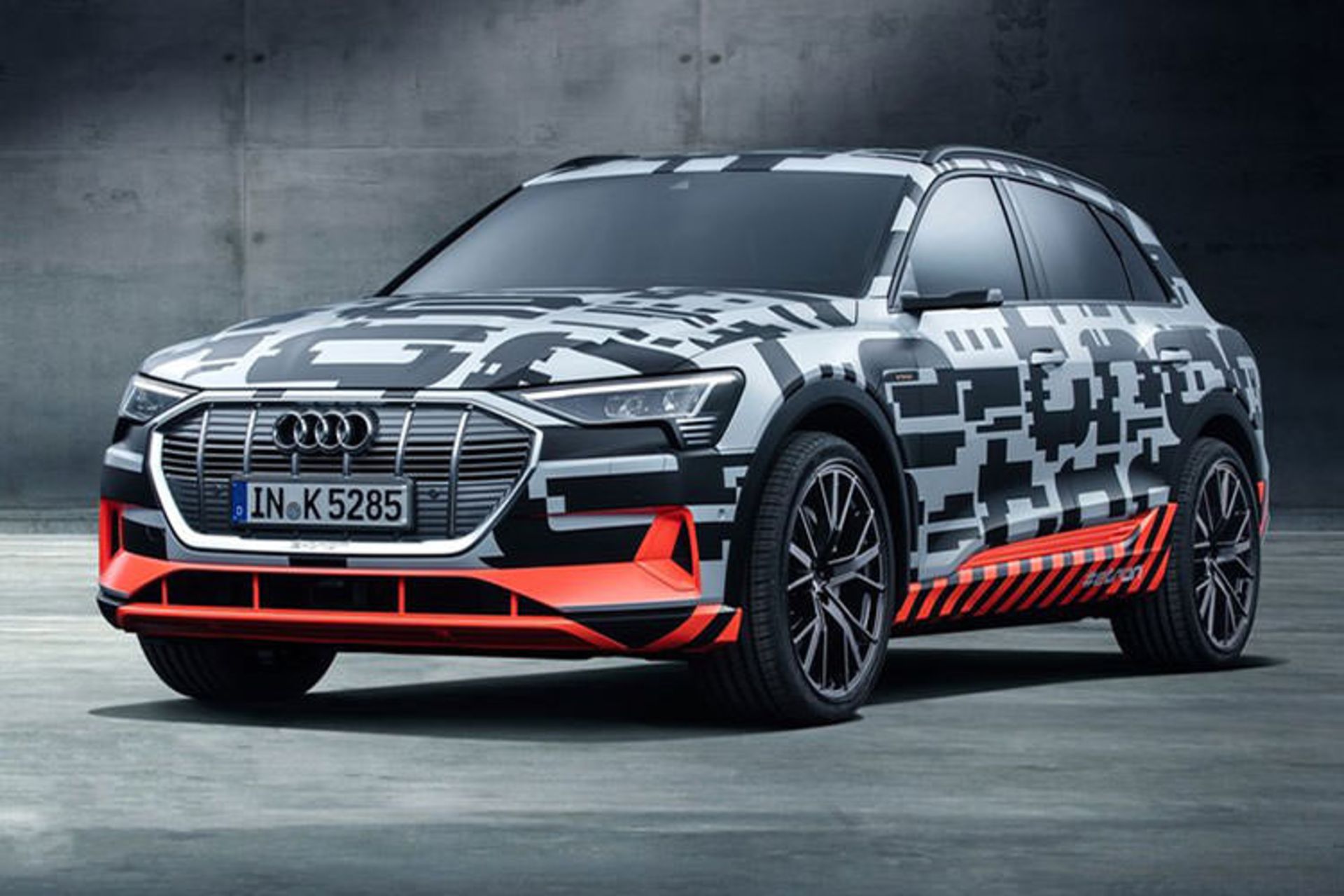 آئودی نخستین نمونه اولیه خود از اولین مدل تمام الکتریکی را برای نمایشگاه خودروی ژنو ۲۰۱۸ معرفی کرد. این شاسیبلند اسپرت، ترکیبی از فضای باز و راحتی یک خودروی لوکس معمولی را با محدودهی مناسبی برای استفاده روزمره ارائه میکند. تا آغاز تولید سری نهایی، تقریبا ۲۵۰ خودروی تکاملی از این مدل تحت شرایط سخت در سراسر جهان تست خواهند شد. نمونههای اولیه ویژه پوشاندهشده نیز فعالیت خود را برای گرفتن عکسهای دیدنی و جذاب آغاز میکنند.
