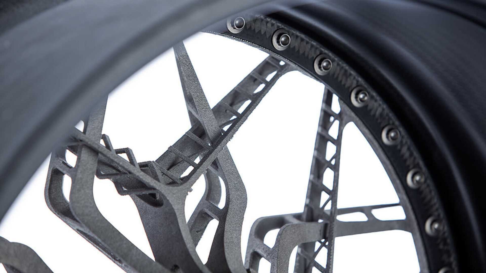 البته این فرآیند نیاز به ماشینکاری زیادی دارد، اما پیوند سطوح بهطور همزمان نیاز به کار کمتری نسبت به حد انتظار دارد. رینگهای چاپ سه بعدی پس از ساخت نیازی به پوشش و روکش اضافی ندارند، زیرا تیتانیوم مستعد خوردگی و پوسیدگی نیست. در نهایت مرکز رینگ با استفاده از بستهای تیتانیومی روی طوقه فیبر کربن نصب خواهد شد.
