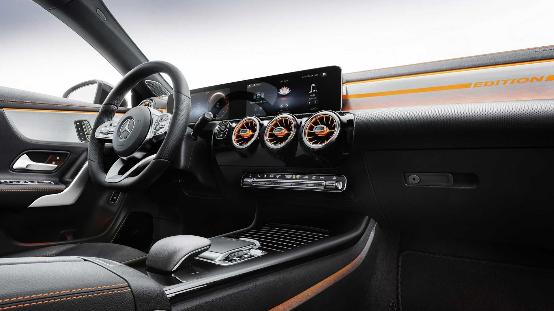 فضای داخلی مرسدسبنز CLA همراهبا نرمافزار تجربهی کاربر مرسدسبنز (MBUX) ارائه شده و کابین استاندارد از یک جفت صفحهنمایش هفت اینچی (یکی برای داشبورد جلوی راننده و دیگری برای سیستم اطلاعاتی و سرگرمی) برخوردار است. مشتریان میتوانند دو صفحهنمایش ۱۰.۲۵ اینچی نیز برای دید بیشتر سفارش دهند. گزینهی دیگر کنترل حرکات (ژست) را به سایر فناوریها اضافه میکند که اجازه میدهد سرنشینان فقط دست خود را برای انتخاب حالتهای مختلف تکان دهند. این روش بهجای استفاده از پد لمسی معمولی در کنسول مرکزی بهکار میرود. سایر پیشرفتهای موجود شامل ناوبری و سیستم صوتی ساراند برمستر (Burmester) میشود.