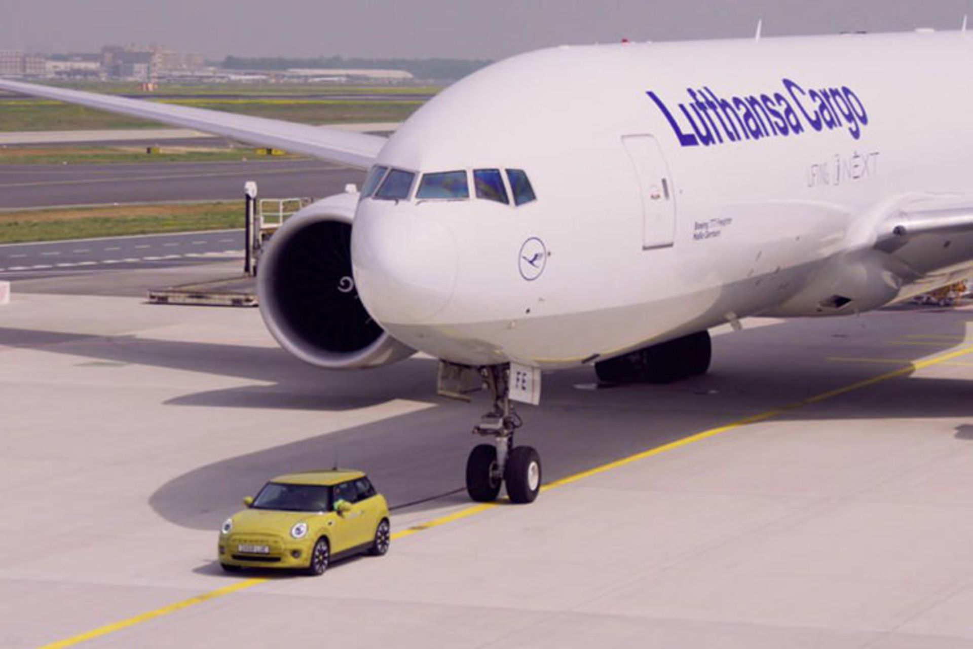کشیدن هواپیمای بوئینگ با مدل الکتریکی مینی کوپر
