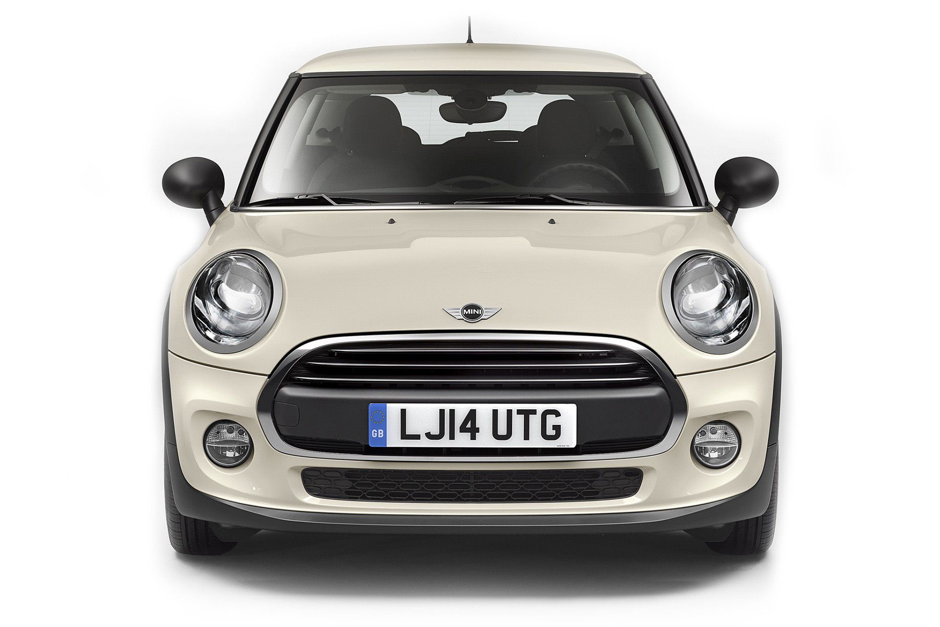 در نمای روبهرو، چراغهای اصلی با فرم بیضیشکل نزدیک به دایره، مهمترین مشخصه در طراحی مینی هستند. با هدف تزریق مولفههای لوکس به مینی کوپر، قاب فلزی براق از جنس کروم در فضای پیرامون چراغهای اصلی و جلوپنجره به کار رفته است. از ترفندهای خلاقانه در این بخش، میتوان به نوار LED روشنایی روز اشاره کرد که با حفظ حالت دایرهای در حاشیهی کاسه چراغ، بهعنوان چراغ چشمکزن راهنما (با تغییر رنگ از آبی روشن به زرد) عمل میکند. روی سپر، فضاسازیهای متنوعی وجود دارد تا یکنواختی در طراحی خودرو را کاهش دهد. در طرفین هم، مهشکنهای سنتی با طرح دایرهای وجود دارند که همراهبا خطوط حجمدهندهی کمرمق، اندکی برجستگی و تنوع ایجاد میکنند.