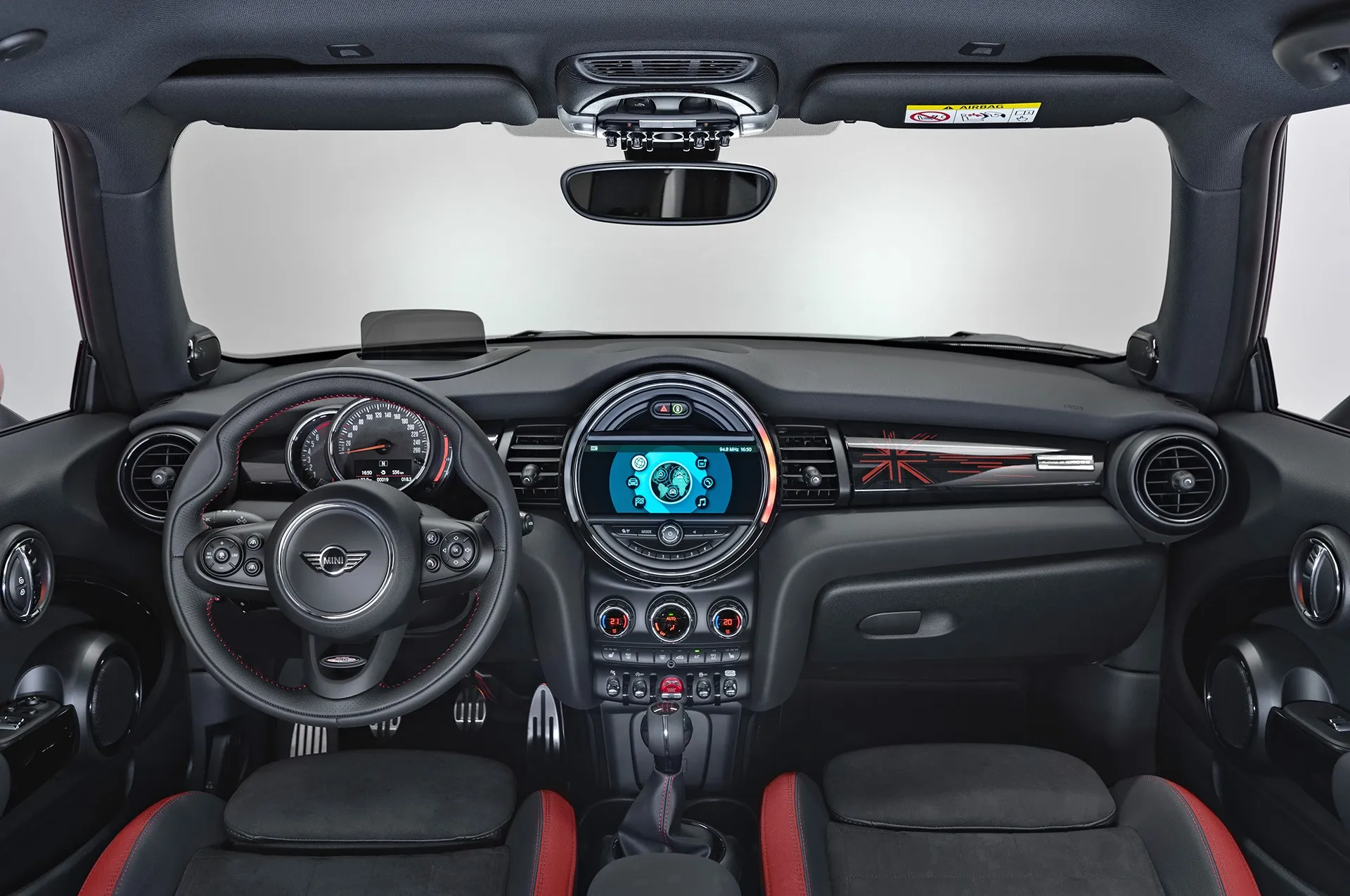 برخلاف نمای بیرونی، چیدمان و امکانات ادوات مختلف در کابین مینی کوپر طی ۱۵ سال گذشته، بارها تغییر کرده است. پیشتر، سرعتسنج بزرگ عقربهای در مرکز داشبورد قرار داشت. حتی در نسخهی پایه از مدل ۲۰۰۴، نشاندهندهی سوخت باقیمانده در باک و حرارت سیستم خنککننده در این بخش روبروی تمام سرنشینان دیده میشود که ظاهری ناخوشایند به وجود میآورد. خوشبختانه این طرح قدیمی در مدلهای جدیدتر با حضور نمایشگر لمسی در دایرهی میانی داشبورد، جایگزین شده است تا ضمن هماهنگی با فناوریهای مدرن، بیتوجه به سنتها و کابین کلاسیک نباشد. مواد به کاررفته در قسمت بالای داشبورد و تودریهای نیز، نرم و مرغوب هستند تا مینی کوپر فراتر از خودروهای کرهای و ژاپنی همکلاس خود باشد.