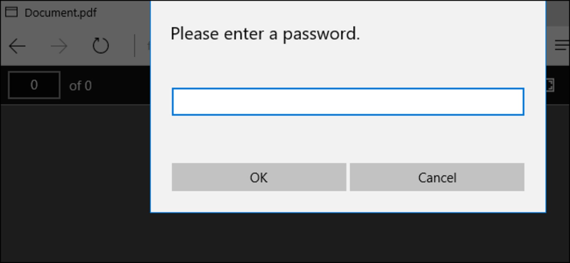 فایل رمزگذاری شده PDF در هر نرمافزار PDFخوان و مرورگری جعبه رمز را نشان داده و برای دسترسی به فایل ورود رمز ضروری است.