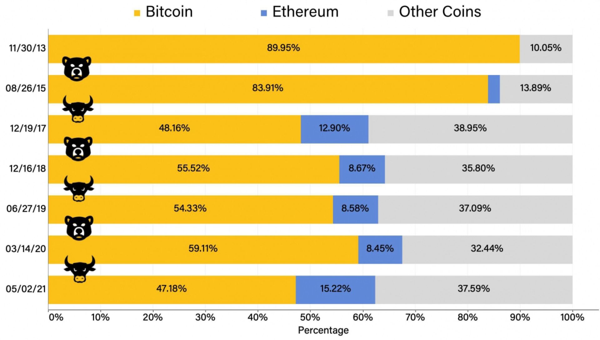 این مورد نیز یکی از دیگر موارد مورد اختلاف است. بسیاری از اعضای جامعهی بیت کوین و «بیت کوین ماکسیمالیستها» عقیده دارند هیچ ارز دیجیتالی نمیتواند جای بیت کوین را بگیرد و ارزش کل بازار آن از بیتکوین فراتر رود.