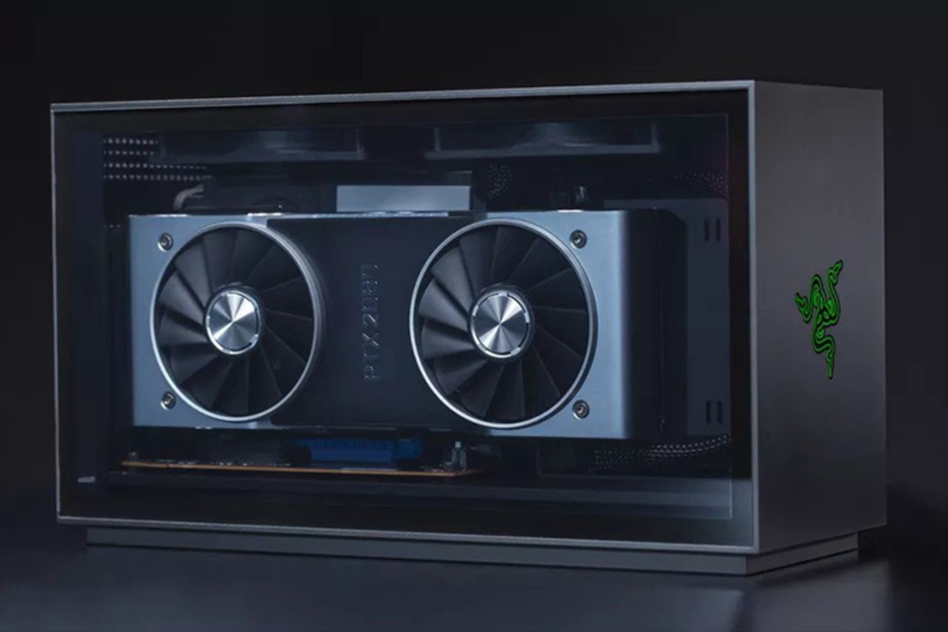 NUC Element در حقیقت مغز محاسباتی تعویضپذیری محسوب میشود که در بهترین حالت، پردازندهی موبایل ۴۵ واتی Core i9-9980HK، سیستم خنککننده، درگاههایی برای رم و حافظهی ذخیرهسازی، ماژول Wi-Fi 6، پورتهای متعدد و تمام سوکتهای موردنیاز برای راهاندازی یک کامپیوتر دسکتاپ را در بطن خود دارد؛ بدین ترتیب ریزر صرفا باید محفظهای زیبا حاوی منبع تغذیه، کارت گرافیک، حافظهی SSD، فن و رم طراحی میکرد.