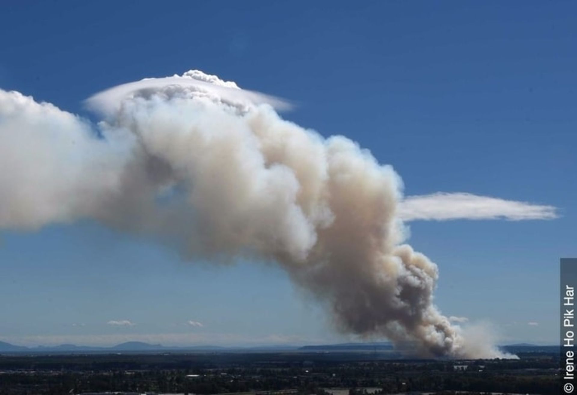 ابرهای فلامگنیتوس در بالای هوای گرم ناشی از آتش شکل میگیرند. در این تصویر، بیشتر چیزی که به عنوان ابر میبینید، در واقع دود است. اما اگر به بالای آن بنگرید، ابری پف آلود، یعنی همان فلامگنیتوس را میبینید.
