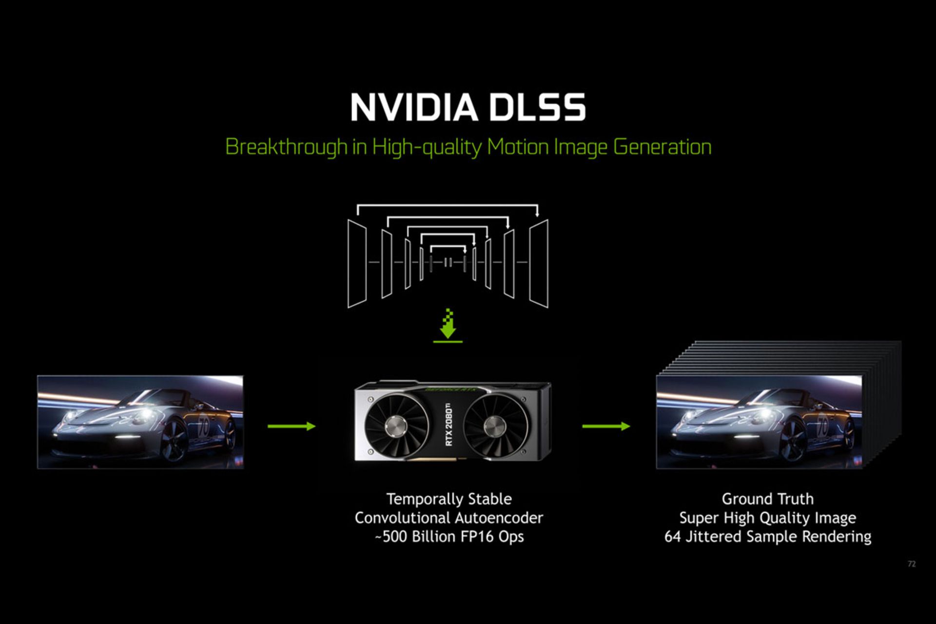 فناوری DLSS (مخفف Deep Learning Super Sampling) در زمان معرفی نسل تورینگ پردازندههای انویدیا (سری GeForce RTX 20) در پاییز ۲۰۱۸ معرفی شد. DLSS درواقع اولین تلاش انویدیا برای استفاده از تجربهی عظیم برنامهنویسی و سختافزارهای مبتنی بر هوش مصنوعی در دنیای گیمینگ بود. پردازندههای گرافیکی سری تورینگ، همگی از هستههای تنسور استفاده میکردند، درنتیجه بهترین کاربرد از آنها، بهرهگیری از هوش مصنوعی برای افزایش کیفیت تصویر در بازیهای ویدئویی بود. بههرحال بهترین رویکرد این بود که هستههای تنسور برای کاربردهای مبتنی بر هوش مصنوعی استفاده شوند و کیفیت بازیها، هرچه بیشتر افزایش یابد، چون در آن زمان بهمرور نمایشگرهای 4K هم با شدت بیشتری وارد بازار میشدند.