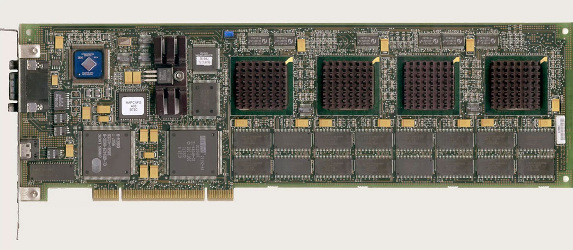 شرکت 3DLabs زمانی بهعنوان غول دنیای پردازش گرافیکی، خصوصا در صنعت رندر حرفهای شناخته میشد و این شرکت زمانی با ساختن محصولات غولپیکر پردازش گرافیکی بهشهرت رسید. یکی از محصولات که در تصویر زیر مشاهده میکنید، Dynmic Pictures Oxygen 402 نام دارد و با چند تراشه در دورهای از تاریخ صنعت سختافزار بهعنوان غول حرفهای پردازش گرافیکی شناخته میشد.
