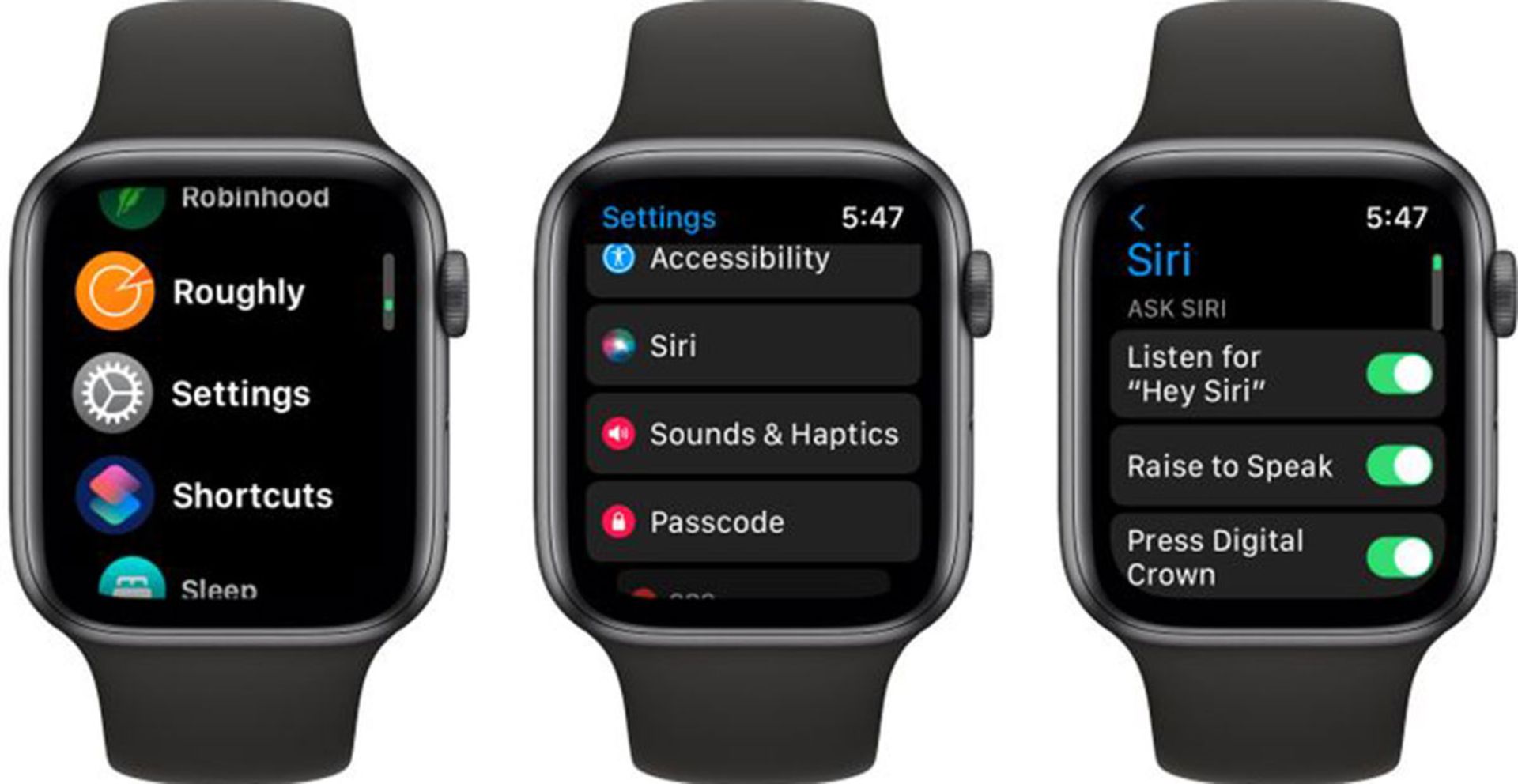 راه دیگر برای فراخوانی سیری در اپل واچ این است که مچ دست خود را بالا بیاورید. ساعت را نزدیک دهان خود نگه دارید و درخواست خود را بیان کنید. فقط باید به این نکته مهم اشاره کرد که برای استفاده از این روش، به اپل واچ سری ۳ با watchOS 5 یا جدیدتر نیاز دارید.