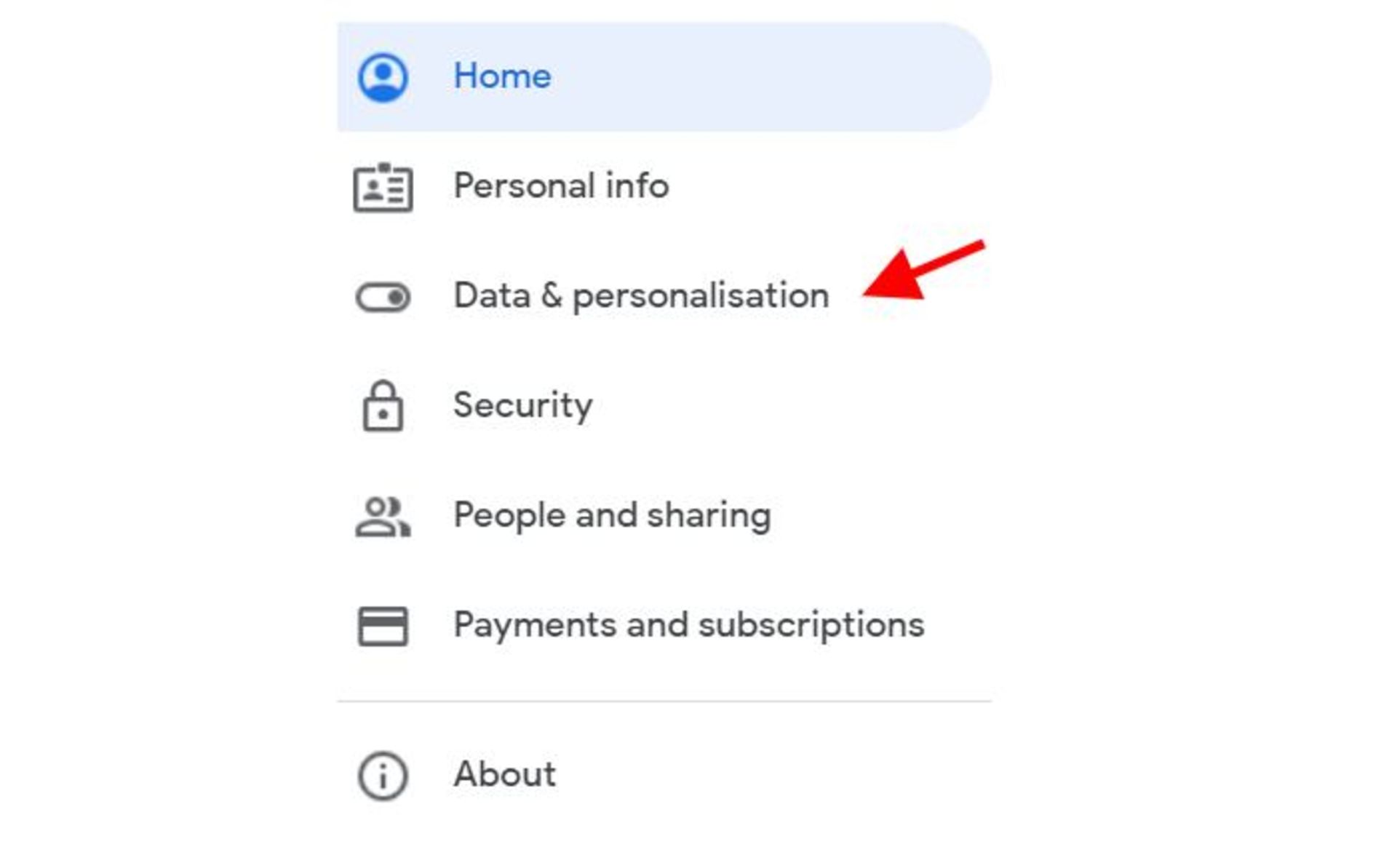 مرحلهی سوم: در منوی ناوبری سمتچپ، Data & personalization (دادهها و شخصیسازی) را انتخاب کنید.
