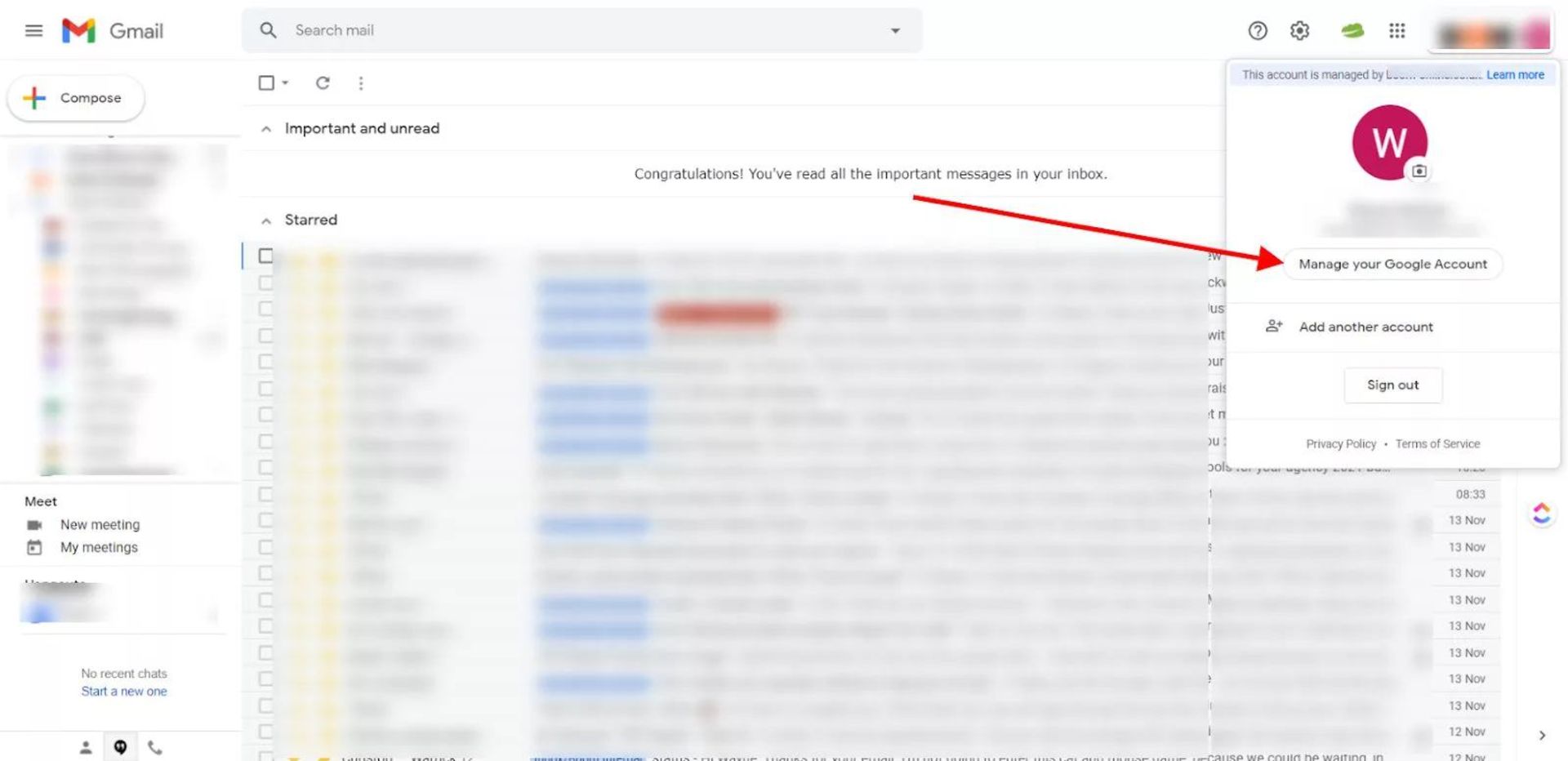 مرحلهی اول: ابتدا باید وارد حساب گوگل خود شوید و به بخش مدیریت حساب بروید.