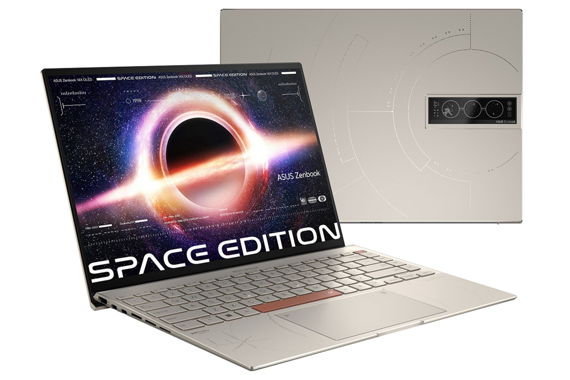 نسخهی Space Edition، روی درِ خود از نمایشگر OLED تکرنگی به ابعاد ۳.۵ اینچ دارد که از ایستگاه فضایی MIR الهام گرفته شده است. روی بدنهی لپتاپ طرحی با کد مورس بهچشم میخورد که عبارت Ad Astra Per Aspera بهمعنای «از میان دشواریها بهسمت ستارگان» را بیان میکند. تایوانیها میگویند لپتاپ Space Edition را بهمناسبت بیستوپنجمین سالگرد ارسال لپتاپ ایسوس به ایستگاه MIR ساخته و گواهی Space Systems Command Standard ایالات متحده را برای این لپتاپ دریافت کردهاند.