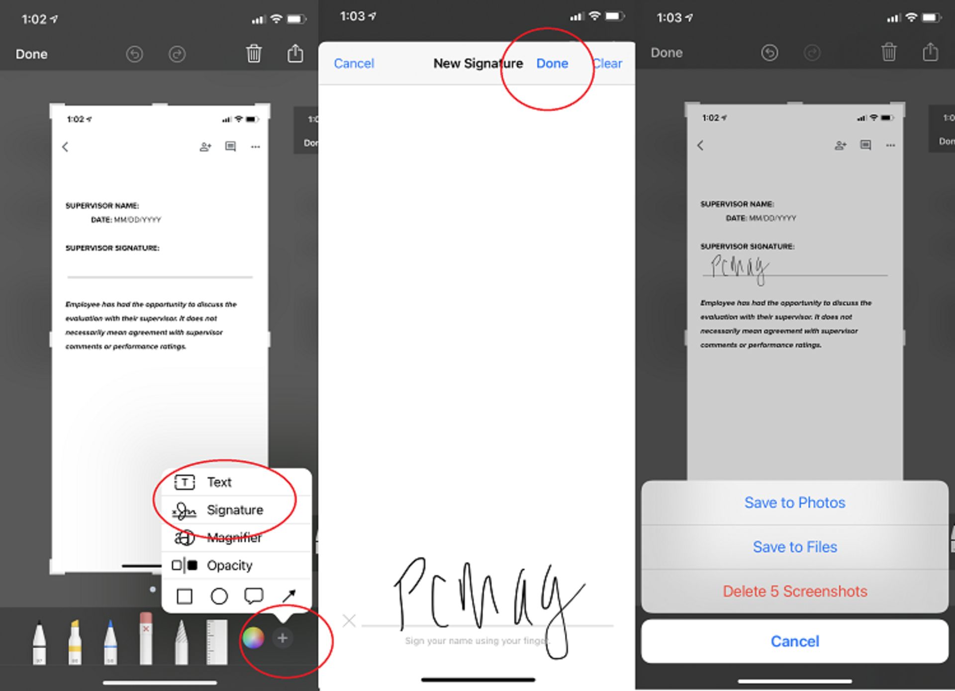 همهی ما در خانه اسکنر و پرینتر نداریم، به همین علت اپل بهسادگی امکان امضای دیجیتال اسناد را برای کاربرانش فراهم کرده است. برای این کار از سند مورد نظر یک اسکرین شات بگیرید و پیشنمایش کوچک آن را لمس کنید. در سمت راست بخش پایینی، آیکون جمع را انتخاب و گزینه Signature را لمس کنید. میتوانید امضای خود را مستقیماً روی صفحه وارد یا از فایل ذخیرهشدهی امضای خود استفاده کنید. سرانجام گزینهی Done را بزنید و امضا را به بخش مورد نظر از اسکرینشات سند، منتقل کنید. میتوانید اندازهی امضا را تغییر بدهید و پس از ذخیره، آن را ارسال کنید.