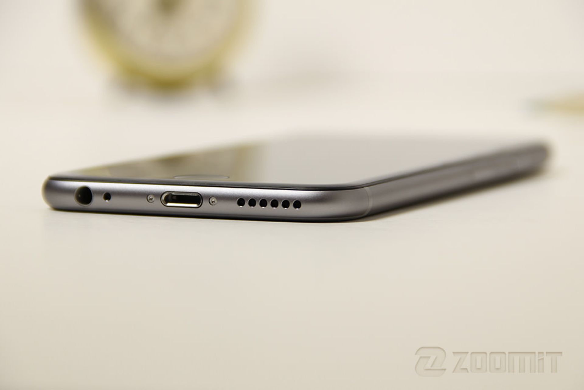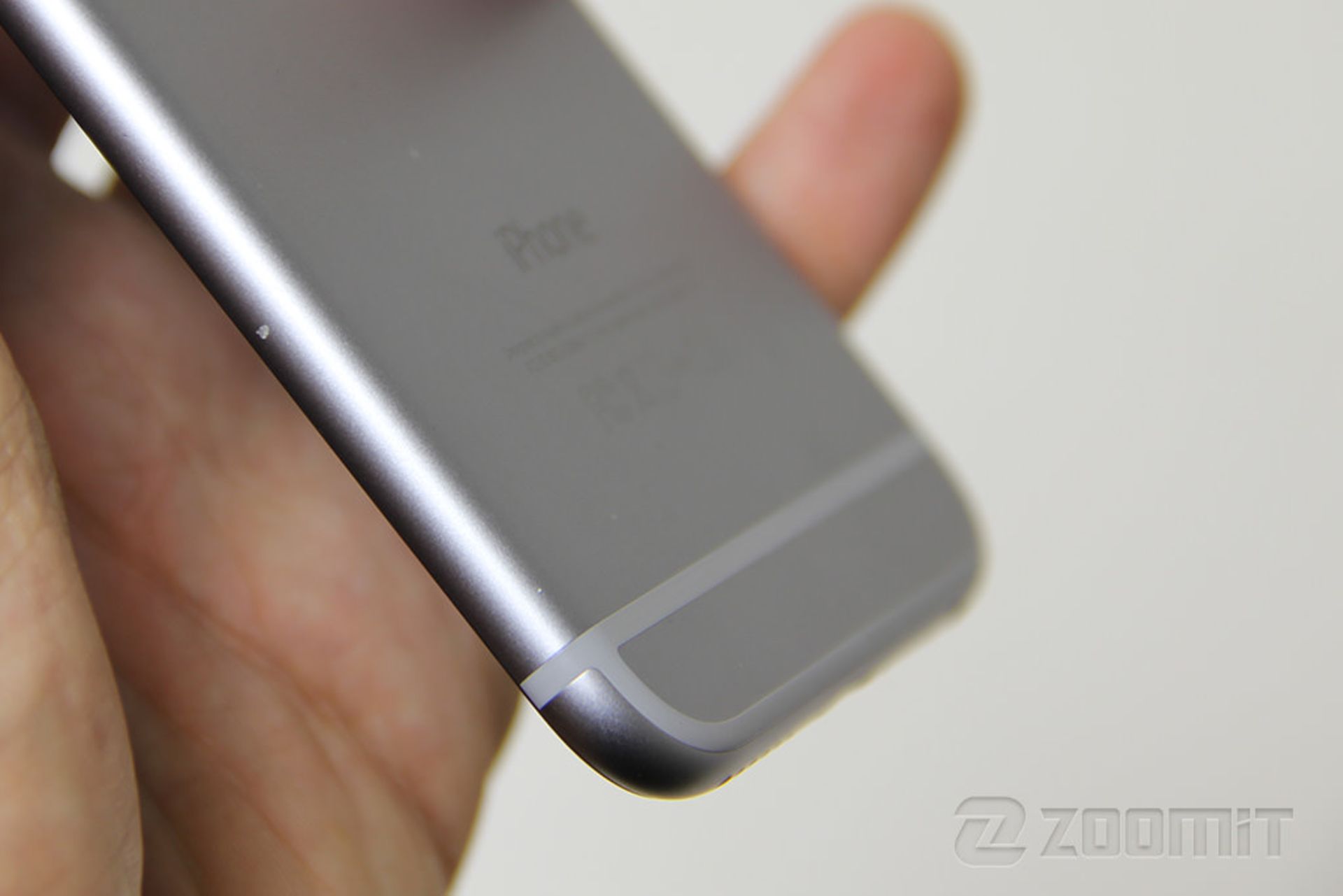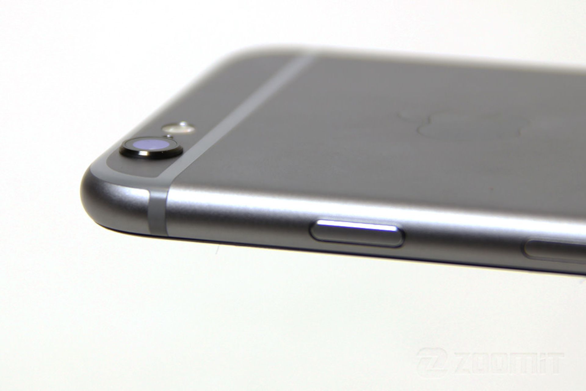 یکی از ایراداتی که به طراحی ظاهری آیفون ۶ وارد میشود دو نوار در قسمت بالا و پایینِ پشتِ تلفن است که کمی ظاهر یکنواخت تلفن را بهم زده است و باعث بینظمی در قسمت پشت دستگاه شده است. مورد دوم نیز مربوط به برآمدگی لنز دوربین در پشت دستگاه است. بهنظر ما اصلا ایرادی نداشت که تلفن بهجای ۶.۹ میلیمتر حدود ۷.۲ میلیمتر ضخامت داشت و در عوض از باتری حجیمتری بهره میبرد و برآمدگی لنز دوربین نیز حذف میشد.