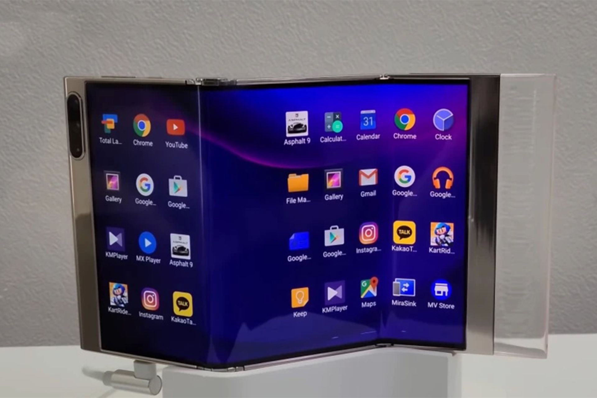 این نمایشگر ۷٫۲ اینچی که «Flex In & Out» نامیده میشود، با تاشدن روی دو محور خود به فشردهترین حالت ممکن میرسد و بهصورت گوشی هوشمند معمولی (البته ضخیمتر) درمیآید تا بتوان آن را در کیف یا حتی جیب حمل کرد.