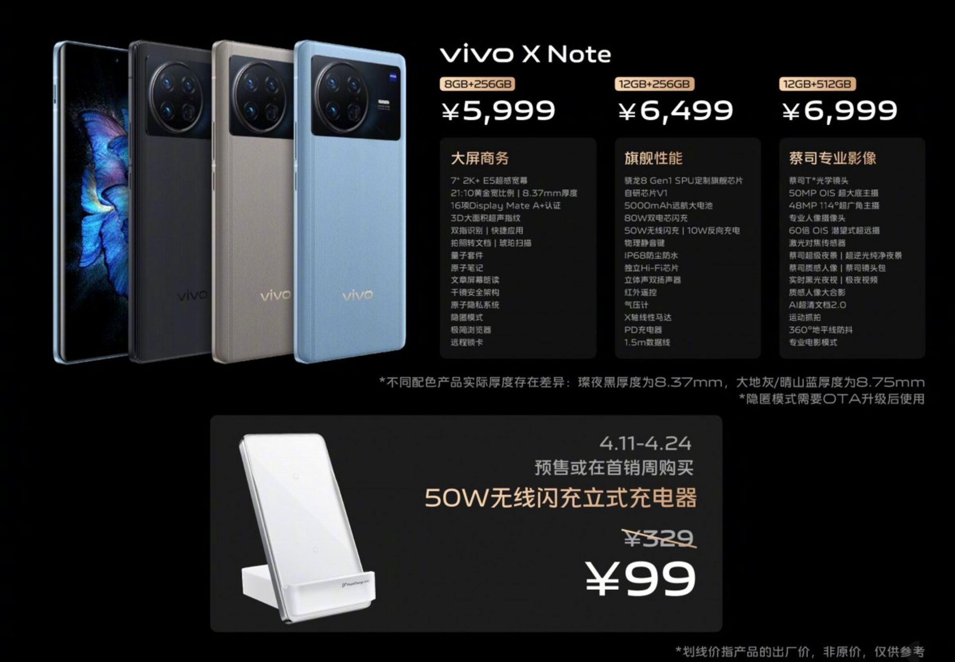 ویوو X Note با نمایشگر ۷ اینچی LTPO و تراشه اسنپدراگون ۸ نسل یک رونمایی شد