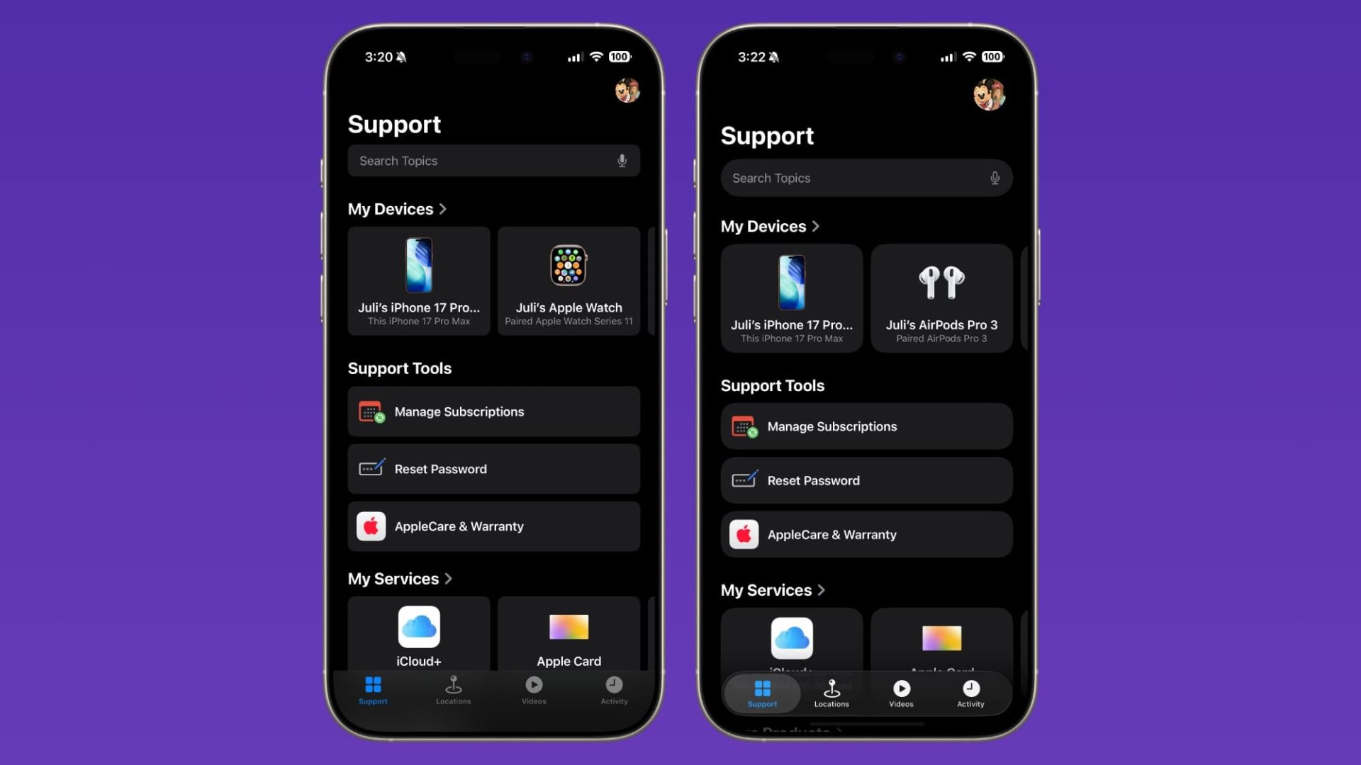اپلیکیشن Apple Support نیز با همین سبک طراحی بهروزرسانی شد و همچنان نقش مرجع اصلی کاربران برای دریافت پشتیبانی و راهنمایی دربارهی دستگاههای اپل را دارد.