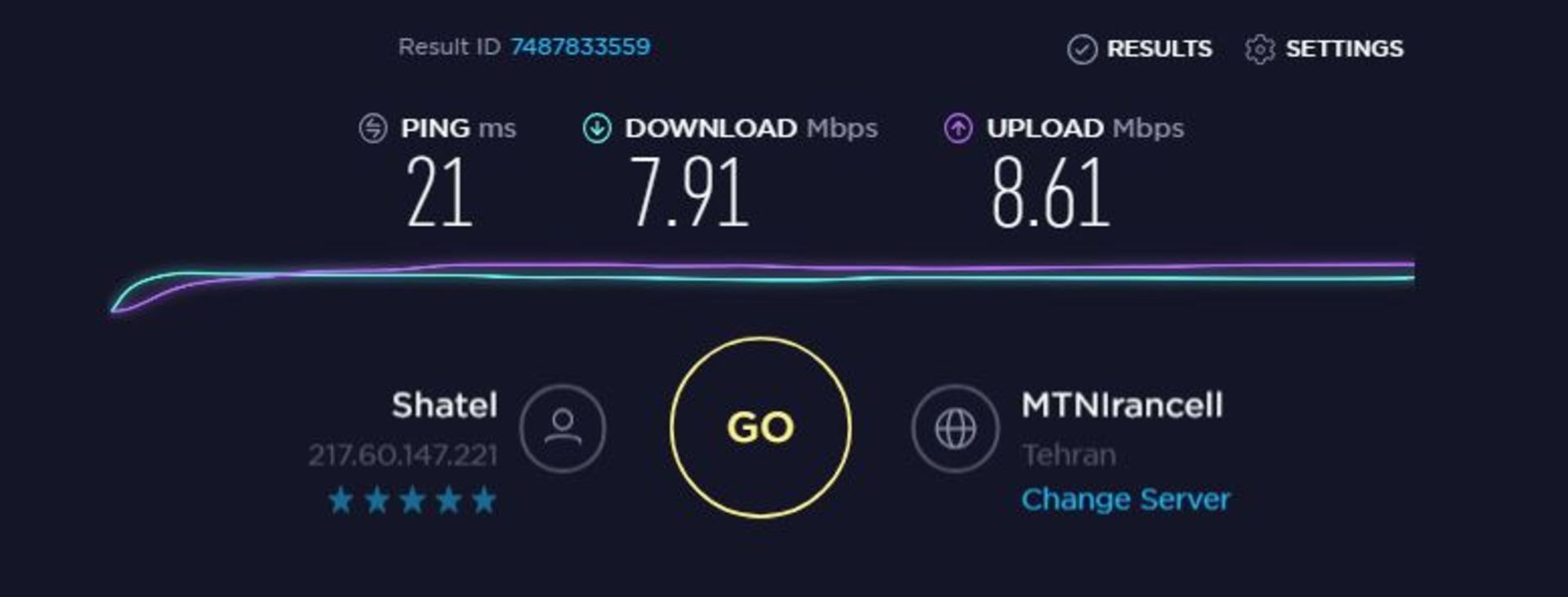 برای بررسی عملکرد اینترنت شاتل موبایل، ابتدا سرعت این سرویس را با سرورهای مختلف در تهران از طریق وبسایت اسپید تست سنجیدیم که میتوانید نتایج را در زیر مشاهده کنید: