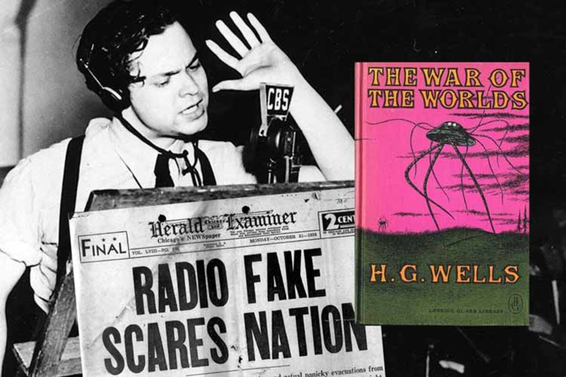 ۸۰ سال قبل (۳۰ اکتبر سال ۱۹۳۸)، اورسن ولز از رادیو اعلام کرد که مریخیها به نیوجرسی حمله کردهاند. در آن زمان بسیاری از شنوندگان رادیو که خبر را باور کرده بودند، وحشتزده از خانههای خود خارج شدند. اما بعدا مشخص شد که این اخبار ساختگی بوده است. در واقع، کارگردان مشهور سینما، نمایش رادیویی بر اساس رمان کلاسیک علمی تخیلی هربرت جرج ولز «جنگ دنیاها» را اجرا میکرد. این اجرا بخشی از یک برنامهی هفتگی بود که با همکاری تئاتر مرکوری از رادیو سیبیاس پخش میشد.