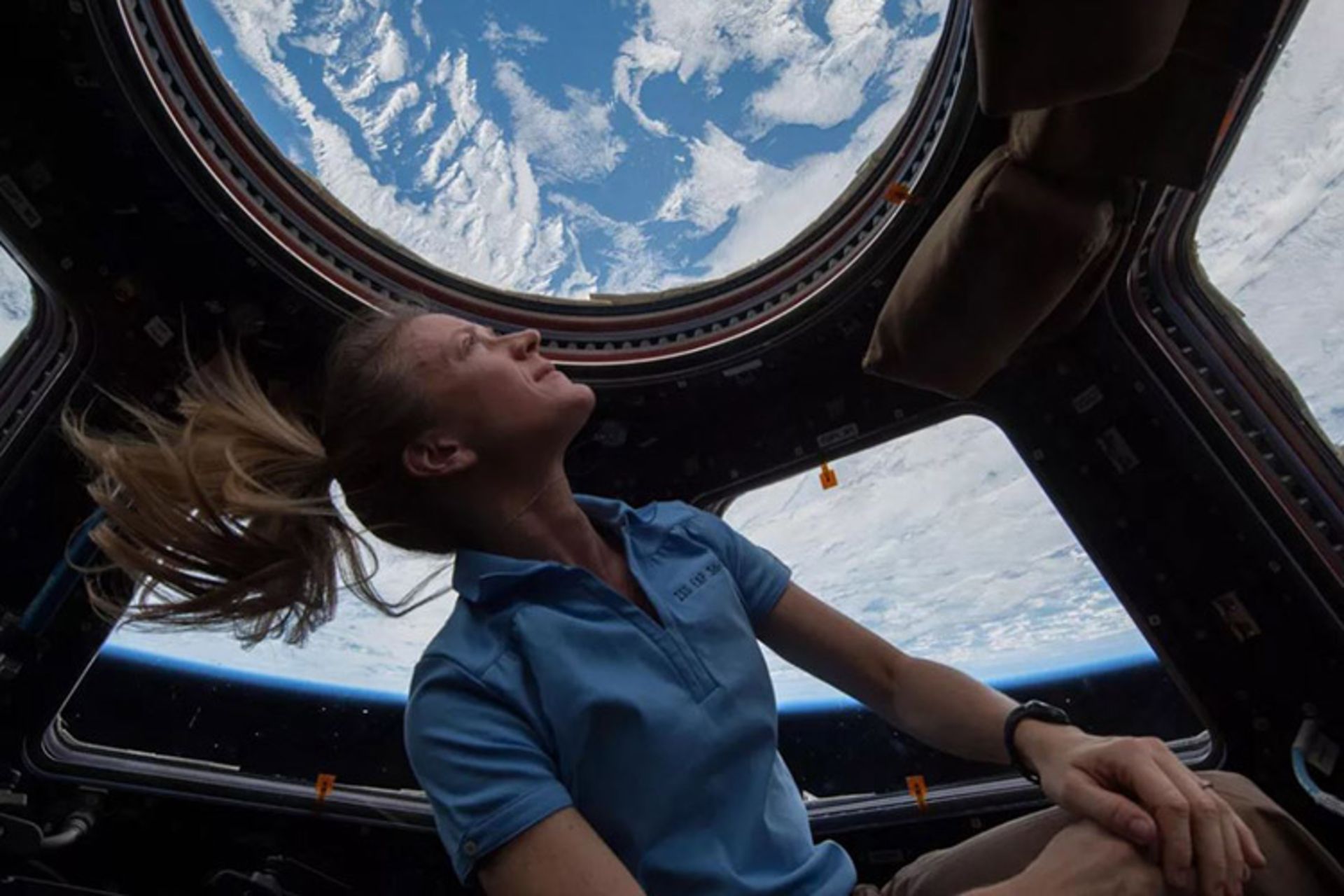 کرن نایبرگ، فضانورد ناسا، از ماژول ایستگاه فضایی کاپولا به بیرون نگاه میکند