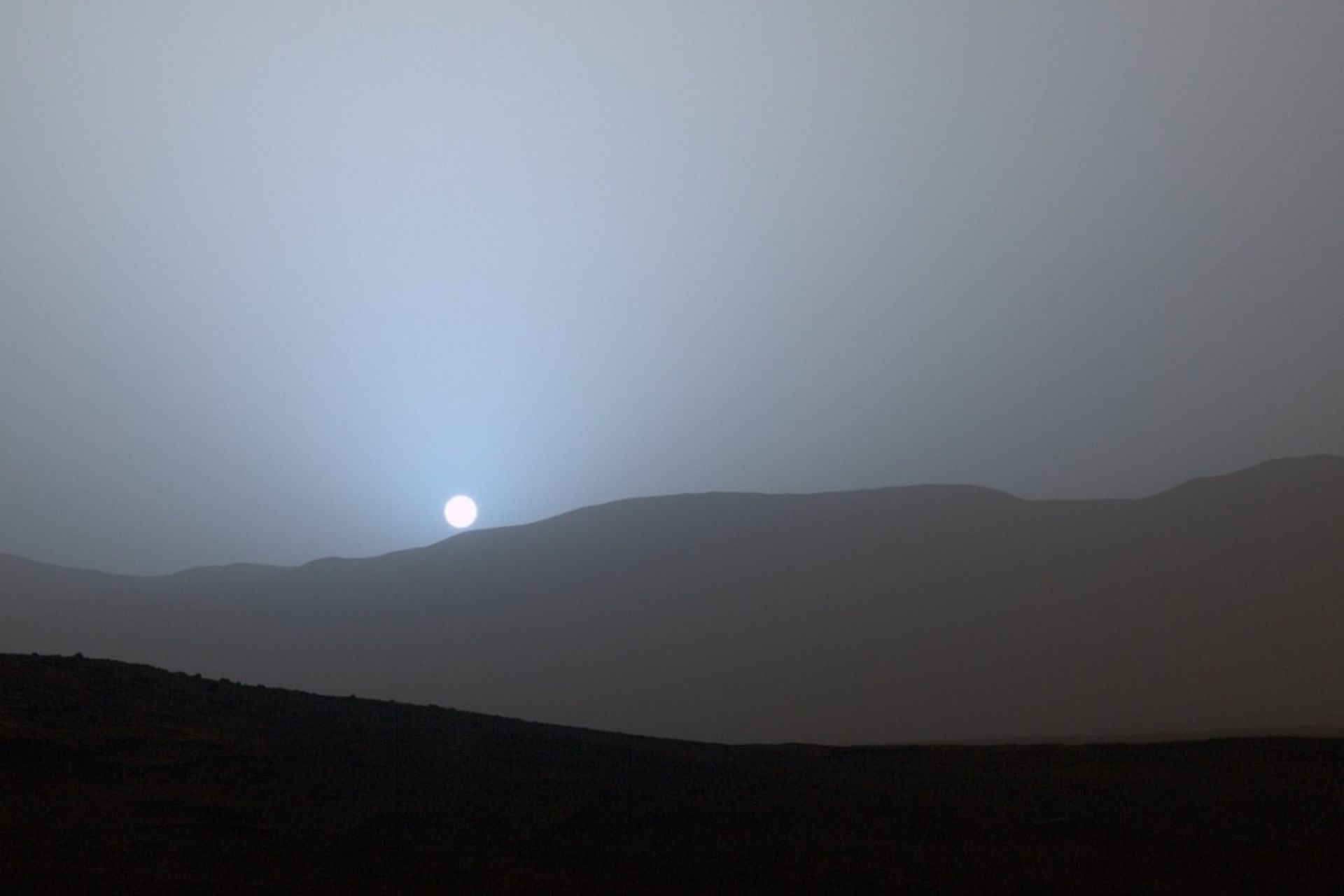 مریخنورد اسپیریت در سال ۲۰۰۵ از پایین دیوارهی دهانهی گوسف، این تصویر از غروب خورشید را در مریخ ثبت کرد. منطقهی کلمبیا هیلز که این دهانه در آن واقع شده است، کاندیدای نهایی درنظرگرفتهشده برای محل فرود پرسویرنس بود.