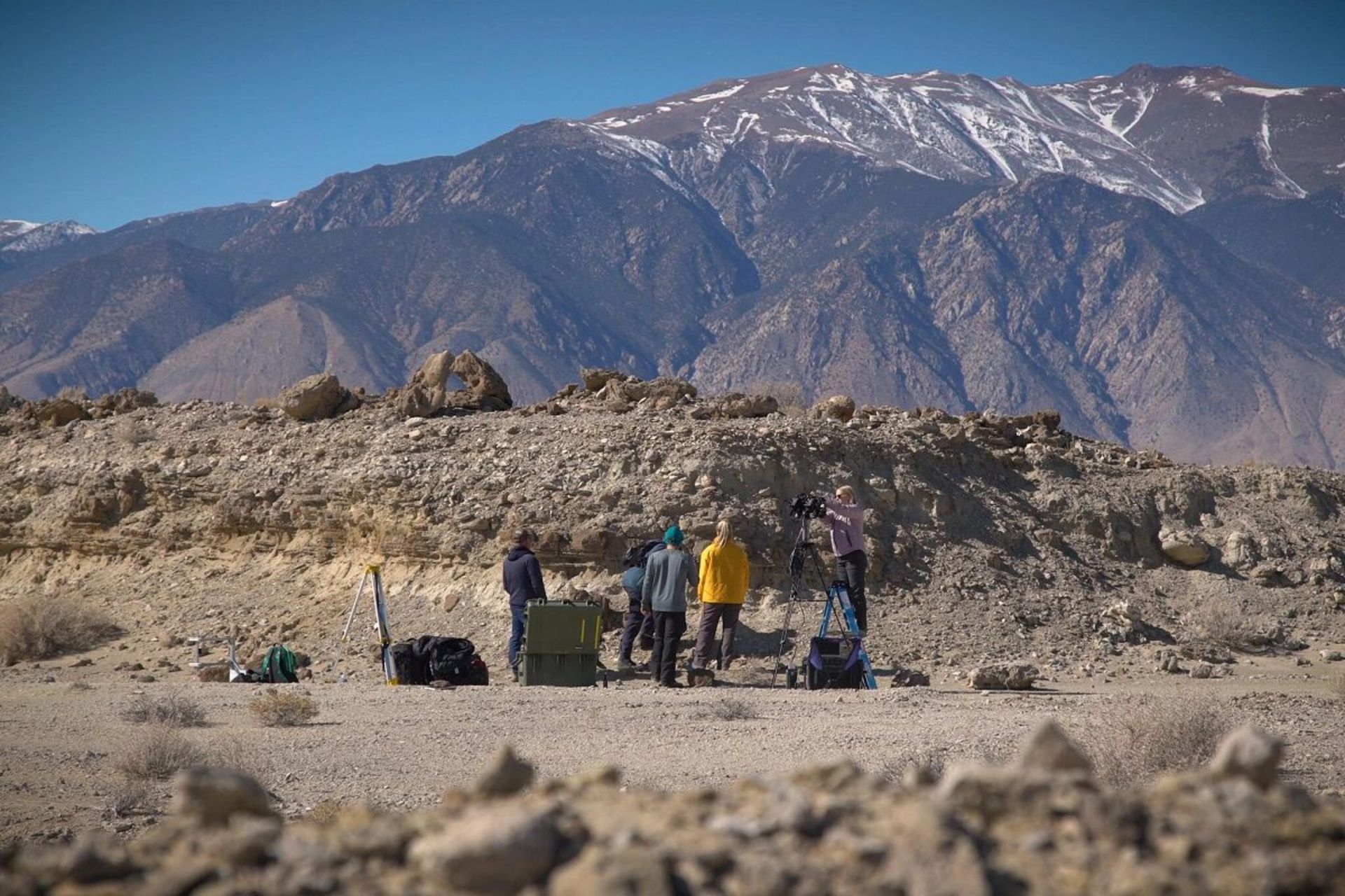 دانشمندان در فوریهی ۲۰۲۰، مأموریت پرسویرنس را در بستر دریاچهی واکر در نوادا شبیهسازی کردند (راست). سنگهای رسوبی لایهلایهی استروماتولیت در بستر دریاچه درجریان آزمایش میدانی در نوادا (چپ).