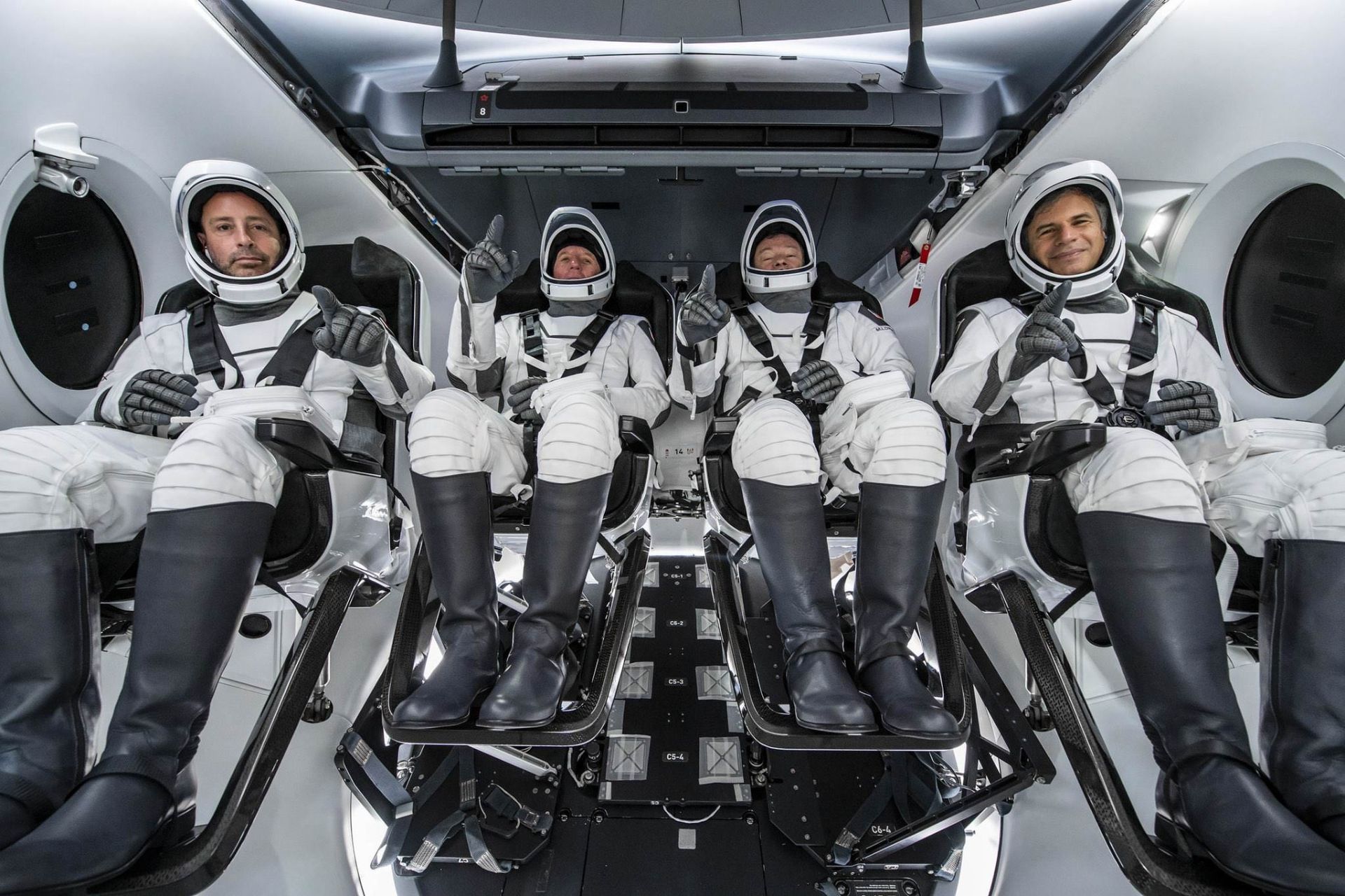 خدمهی مأموریت اکسیوم وان: از چپ لری کانر، مایکل لوپز آلگریا، مارک پتی و ایتان استیب.