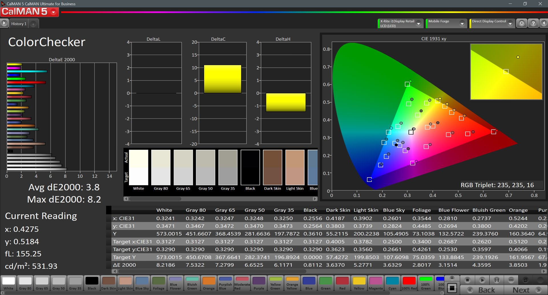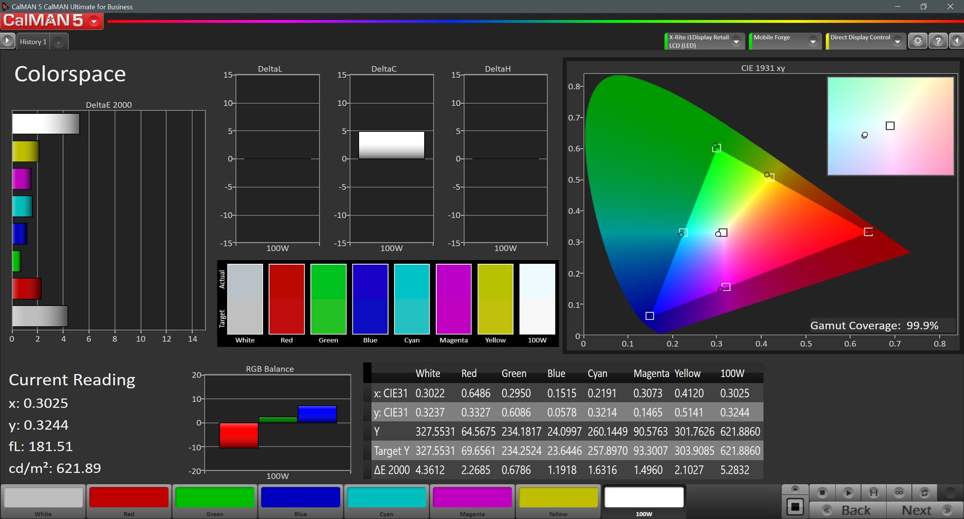 محصول / پارامترها | حداقل روشنایی | حداکثر روشنایی دستی | حداکثر روشنایی خودکار | نسبت کنتراست Native | خطای رنگ میانگین | |||