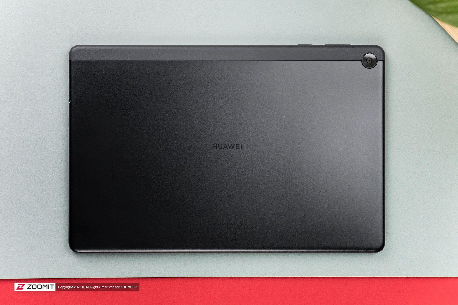 قاب پشتی میت پد تی ۱۰ از دو قسمت تشکیل شده که بخش زیادی از آن فلزی و بخش دیگر که بهصورت نوار باریکی کل لبهی بالایی را دربرگرفته، پلاستیکی است، این نوار پلاستیکی نقش بهبود آنتندهی در اتصال Wi-Fi و موبایل را برعهده دارد. میت پد تی ۱۰ ساختار محکمی دارد؛ اما پوشش براق قاب فلزی آن آثار انگشت و چربی را بهخود جذب میکند.