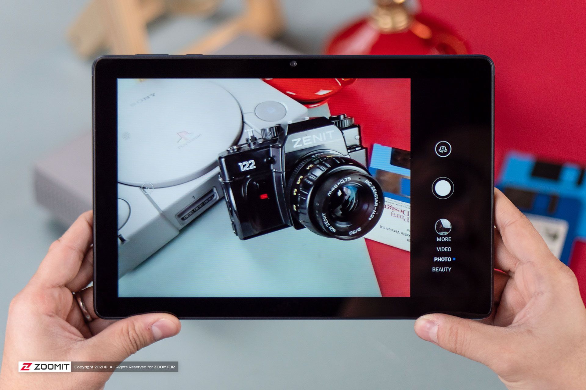 از تبلت نباید انتظار دوربین باکیفیت داشت و این موضوع در مورد میت پد تی ۱۰ نیز صدق میکند. دوربین پشتی از حسگر ۵ مگاپیکسلی و لنزی با دیافراگم f/2.2 بهره میبرد، از فوکوس خودکار نیز پشتیبانی میکند و قابلیت فیلمبرداری Full HD با نرخ ۳۰ فریمبرثانیه نیز دارد. دوربین جلوی میت پد تی ۱۰ هم از حسگر ۲ مگاپیکسلی با دیافراگم f/2.4 بهره میبرد و میتواند ویدئوهایی با وضوح 720p و نرخ ۳۰ فریم برثانیه ضبط میکند. دوربینهای تبلت میت پد تی ۱۰ بیشتر به درد تماسهای تصویری و عکاسی از مدارک و جزوهها میخورد و برای عکاسی از منظره و عکاسی در شب اصلا مناسب نیست.