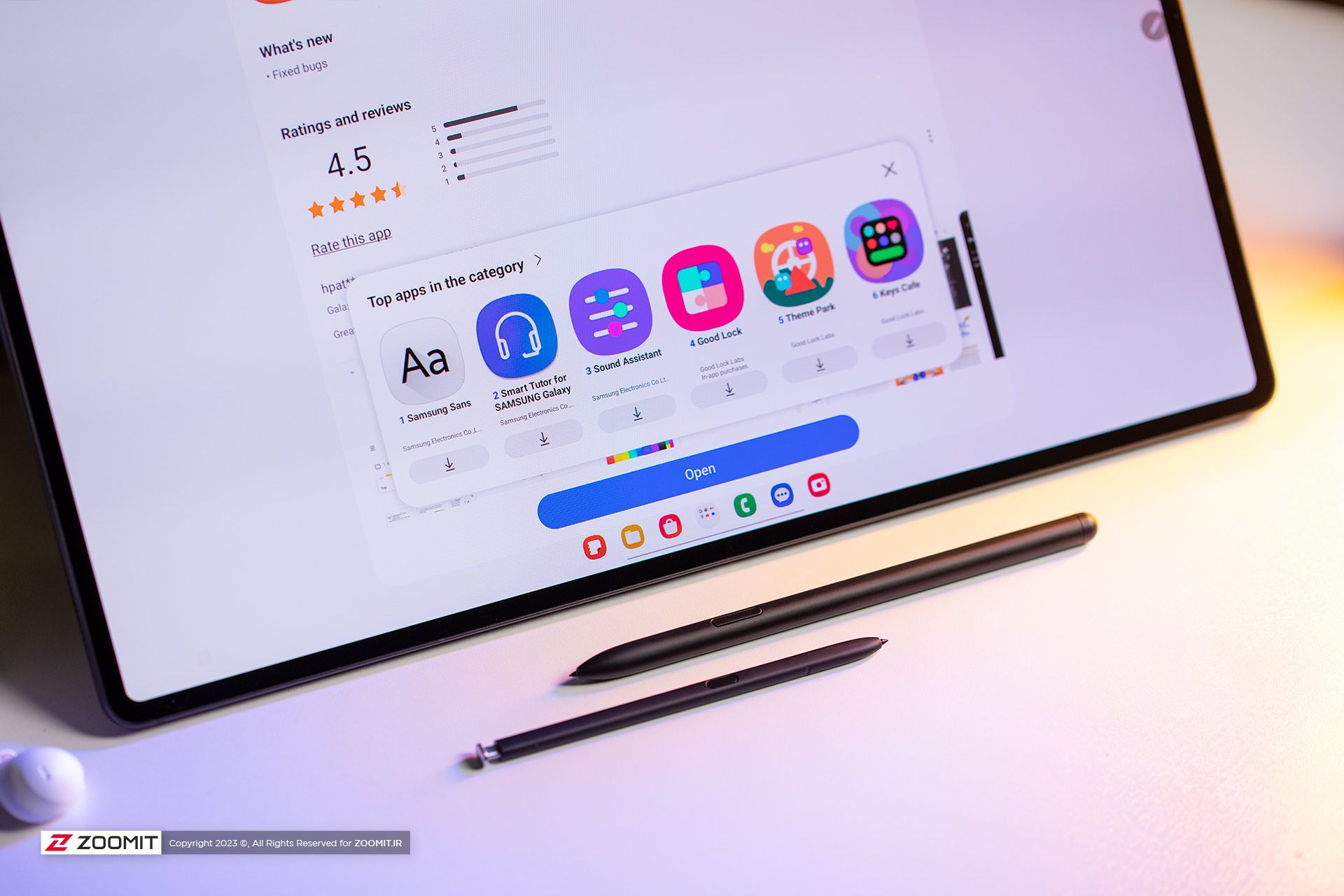 گلکسی تب اس ۸ اولترا بهطور پیشفرض با اندروید ۱۲ بهفروش میرسد؛ اما ما در زمان بررسی، بهروزرسانی اندروید ۱۳ با One UI 5.0 را نیز دریافت کردیم. رابط کاربری جدید سامسونگ تفاوت بنیادی و چشمگیری با نسخهی قبلی ندارد؛ شما میتوانید برای پیبردن به جزئیات این نسخه، بررسی One UI 5.0 را در زومیت مطالعه کنید.