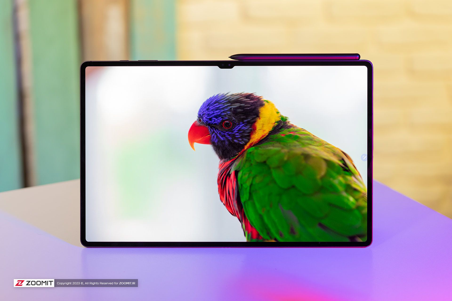 صفحهنمایش ۱۴٫۶ اینچی گلکسی تب اس ۸ اولترا بهمعنای واقعی کلمه غولپیکر است و بزرگترین صفحهی لمسی OLED بهشمار میآید که در تاریخ فعالیت زومیت بررسی کردهایم؛ با کیفیت تصویری که از پنلهای Samsung سراغ داریم، در همین ابتدای کار میگویم که از تماشای فیلم با تب اس ۸ اولترا، نهایت لذت را خواهید برد.