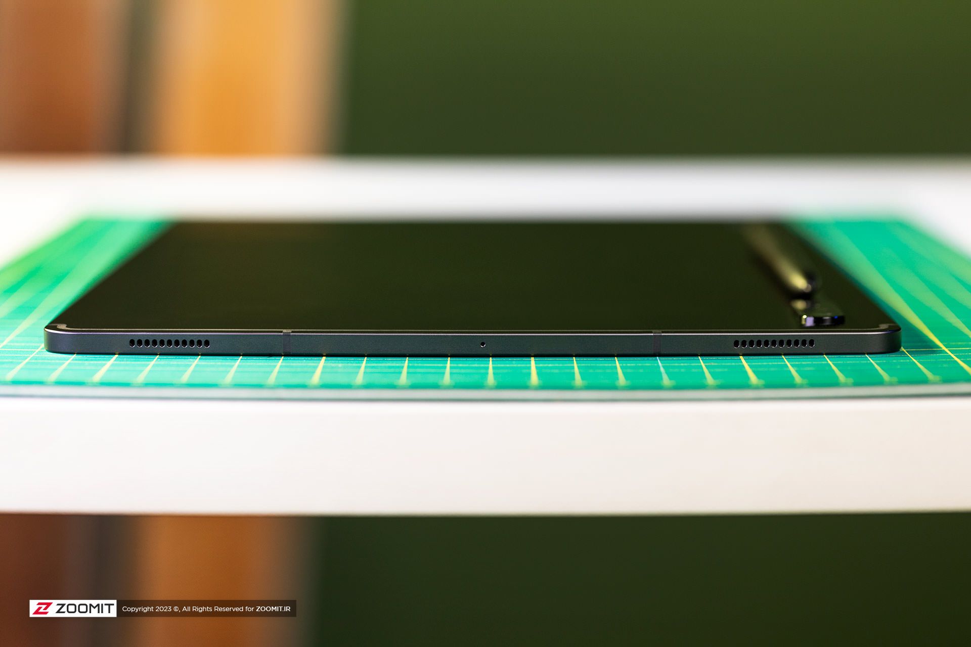 گلکسی تب اس ۸ اولترا بسیار باریک و بسیار غولپیکر است؛ در مورد دستگاهی ۱۴٫۶ اینچی صحبت میکنیم که فقط ۵٫۵ میلیمتر ضخامت دارد؛ حتی از آیپد پرو ۶٫۴ میلیمتری هم باریکتر؛ آنقدر باریک که وقتی تبلت را در دست میگیرید، مدام میترسید که «نکنه یه موقع از وسط تا بشه». طبیعتا از ما هم نباید انتظار داشته باشید که مقاومت دستگاه چند ۱۰ میلیونی را آزمایش کنیم؛ این مورد را به رسانههای جهاناولی میسپاریم!