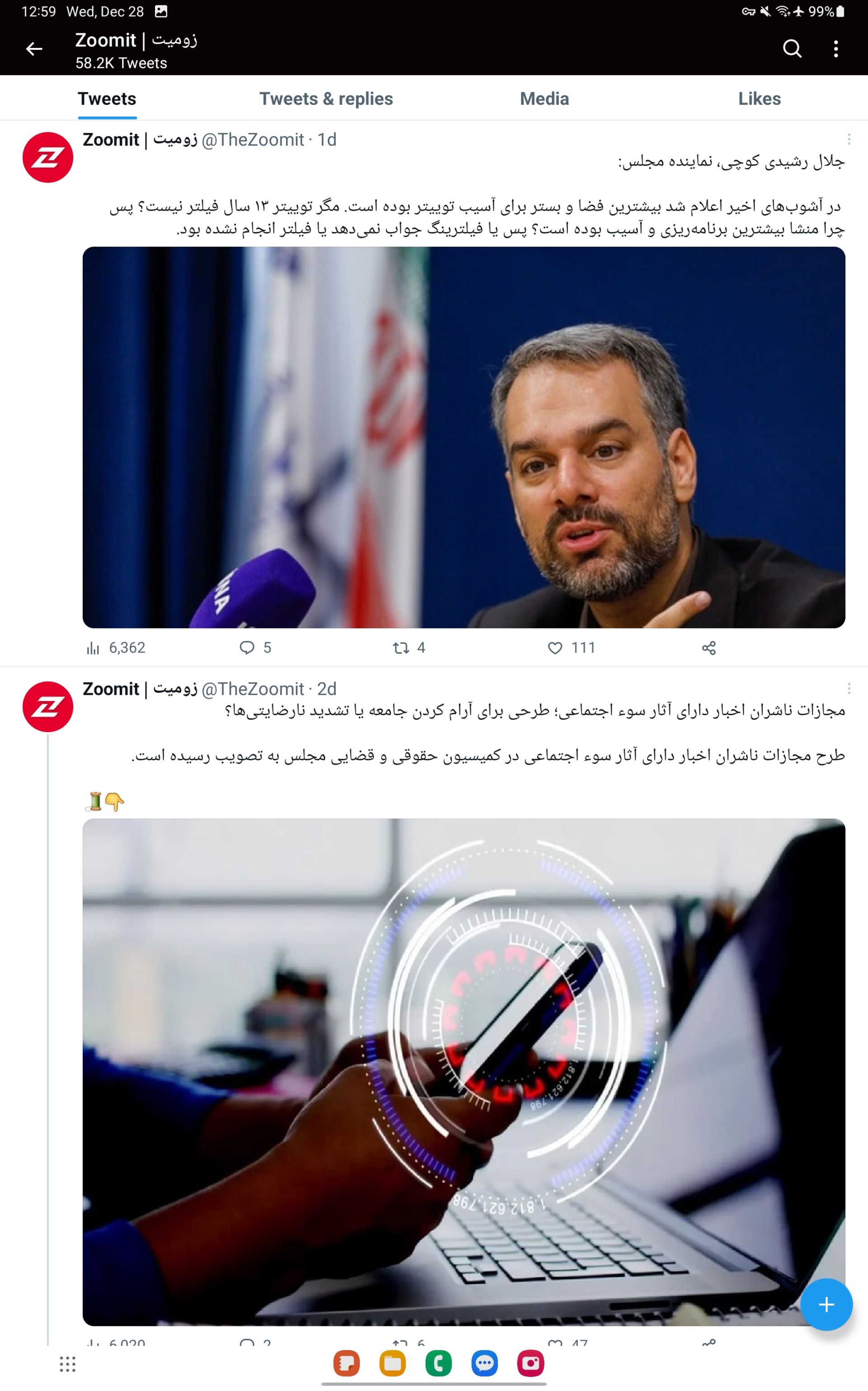 گذشته از موارد مثبت رابط کاربری، هنوز هم بسیاری از اپها از فضای موجود روی صفحهی تبلتها استفادهی بهینهای ندارند؛ بهعنوان مثال، اینستاگرام تنها در حالت عمودی و بهطور تمام صفحه اجرا میشود یا توییتر صرفا برای جا شدن در صفحهی دستگاه، آپاسکیل میشود؛ نمونهای از این مشکل را در تصویر زیر میبینید.
