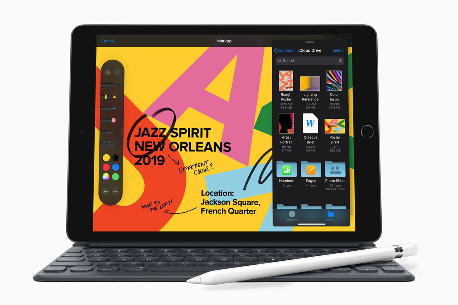 با توجه به شایعات ماههای گذشته، انتظار میرفت اپل نسل جدید تبلتهای خود را در ماههای آینده، بهویژه در مراسم اکتبر، رونمایی کند؛ ولی اینچنین نشد و کوپرتینوییها در مراسم سپتامبر، اولین عضو از خانوادهی تبلتهای نسل هفتمی را رونمایی کردند. نسل جدید تبلت اپل از قلم نسل اول اپل درکنار کیبورد هوشمند این شرکت پشتیبانی میکند. بنابر اعلام اپل، آیپد ۱۰.۲ اینچی اولینبار از بدنهای ساخته شده که در آن کاملا از آلومینیوم بازیافتی استفاده شده است.
