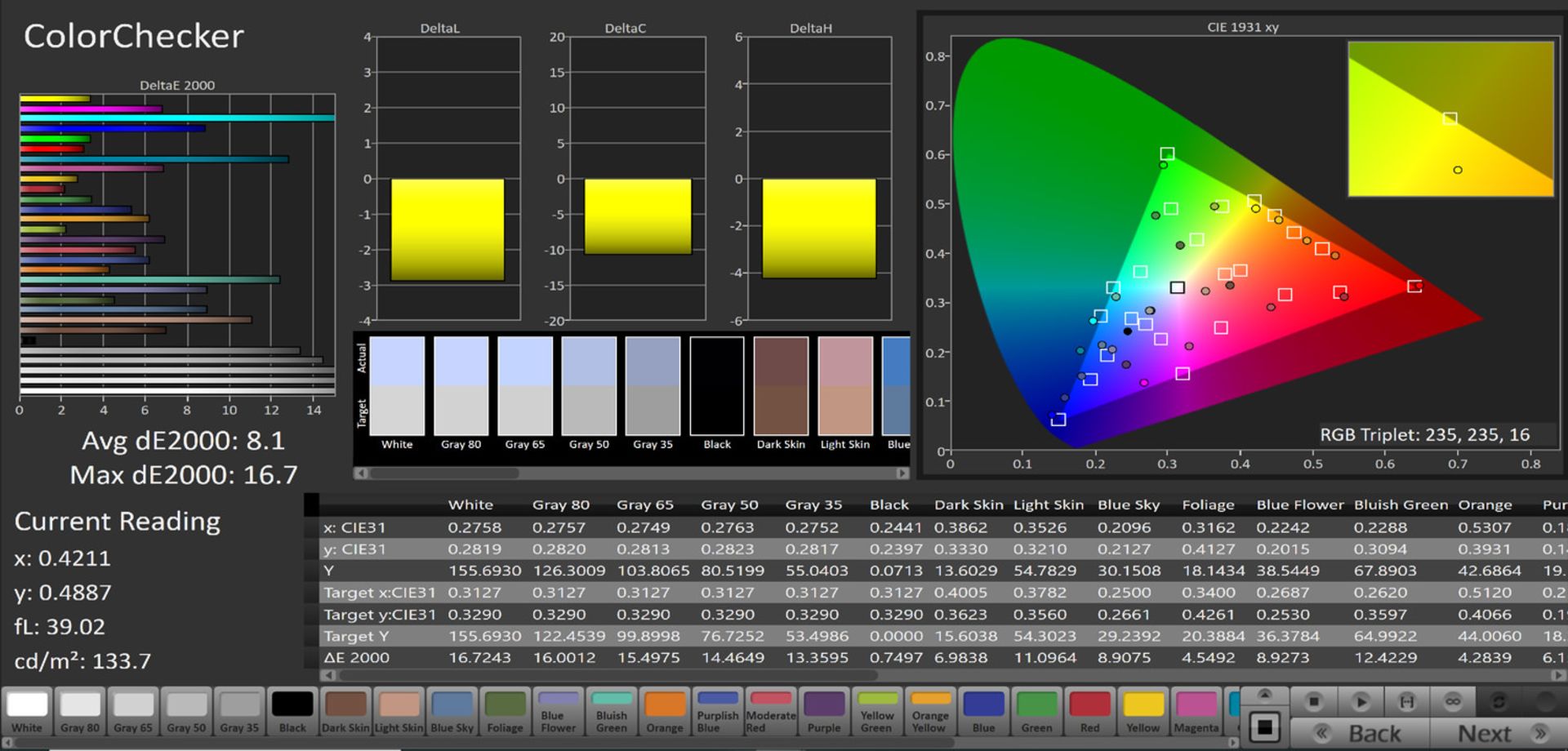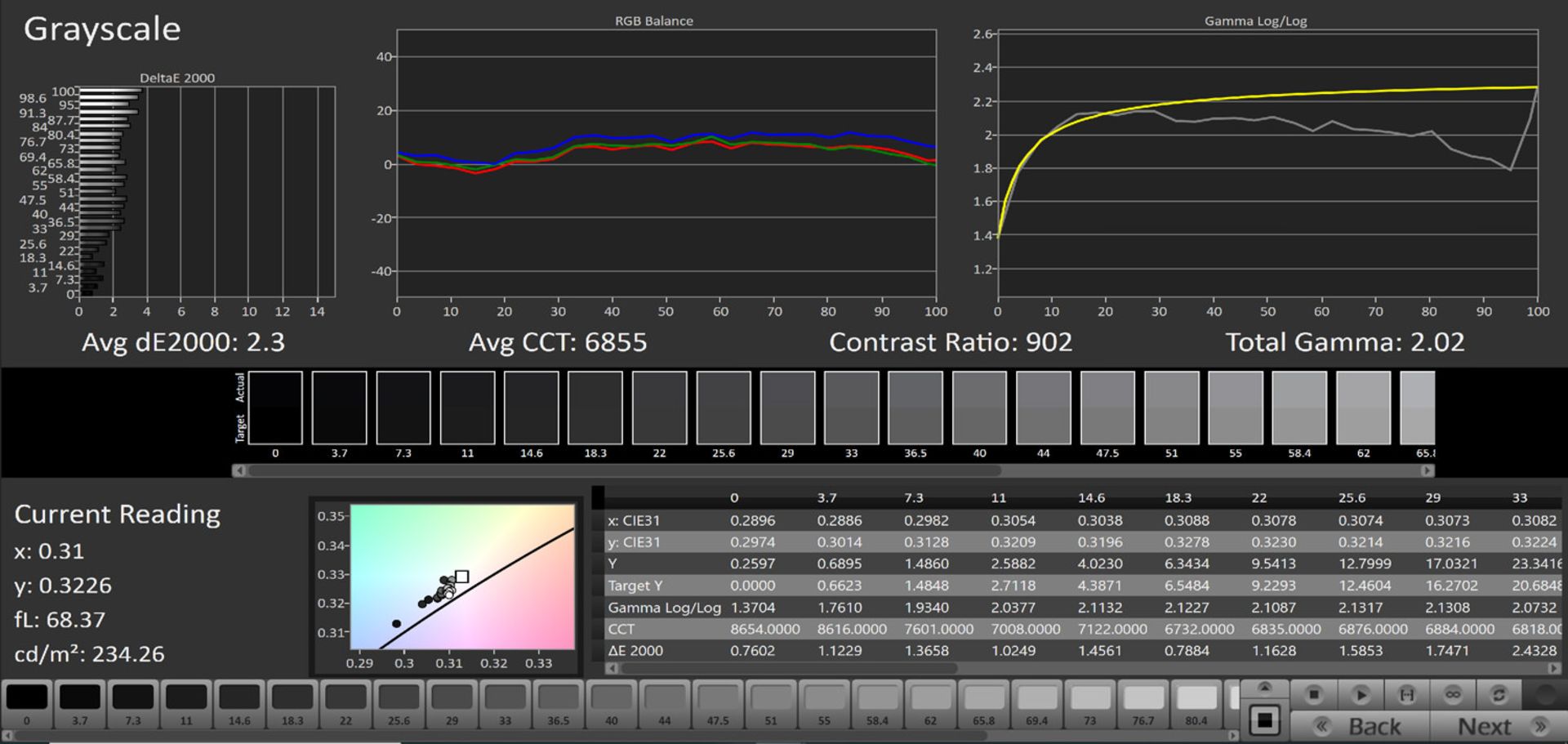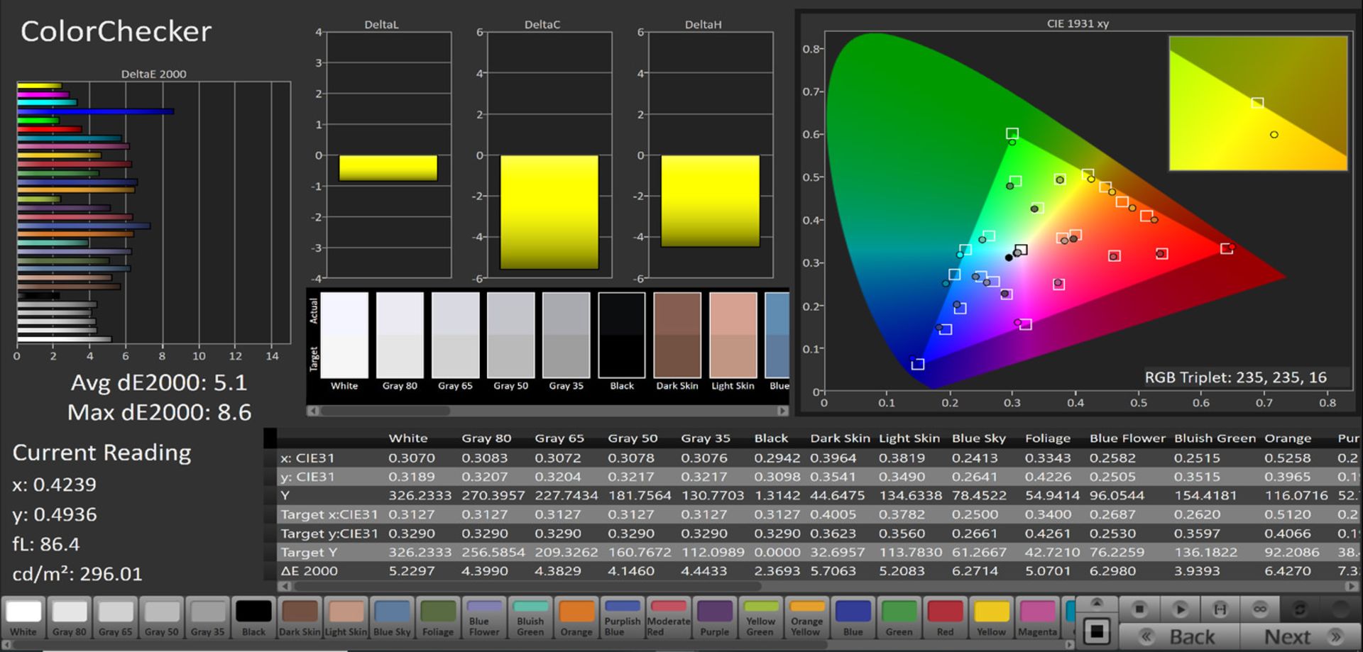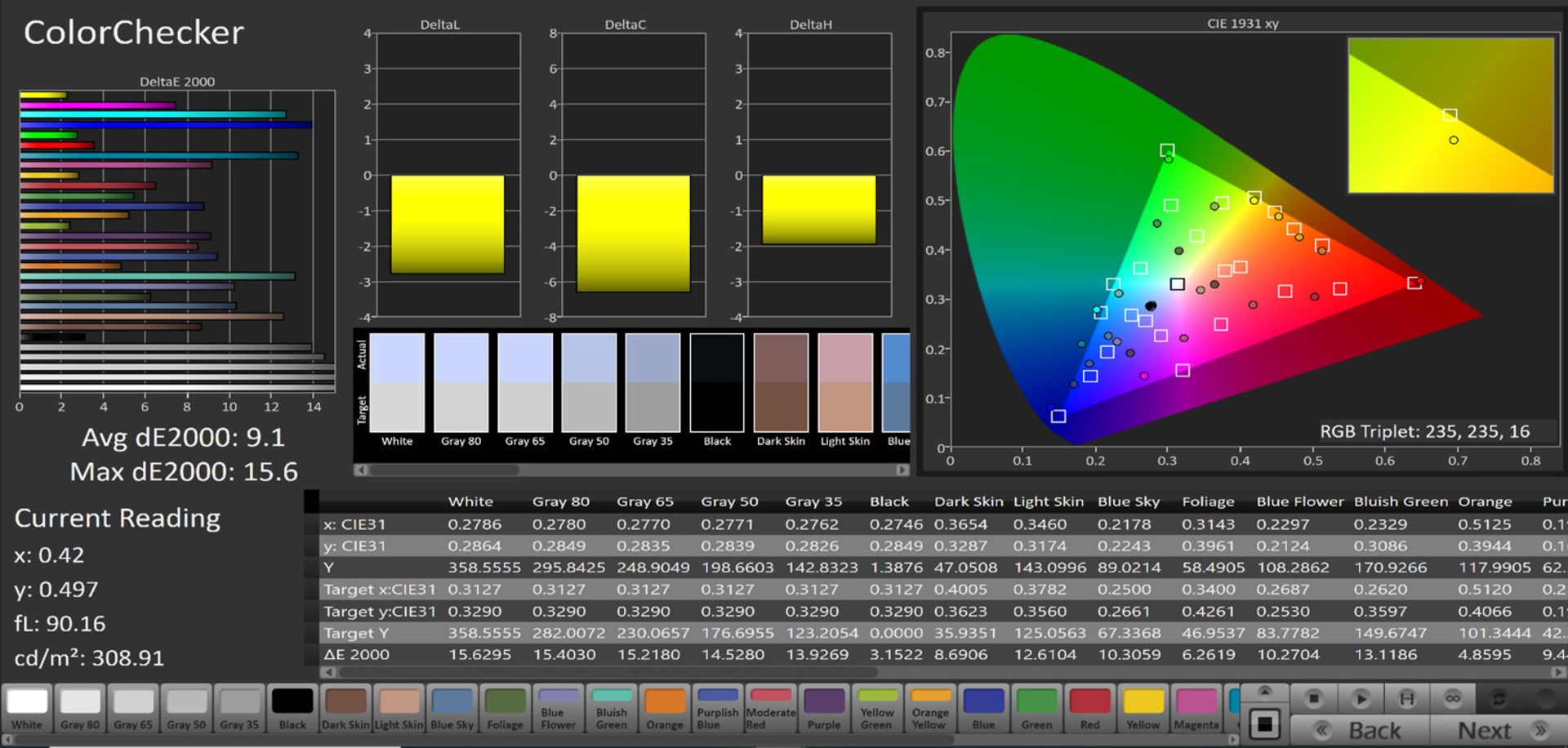 حالت تصویر | پوشش sRGB | پوشش DCI-P3 | میانگین خطا در sRGB (حالت Normal) | میانگین خطا در sRGB (حالت Warm) |