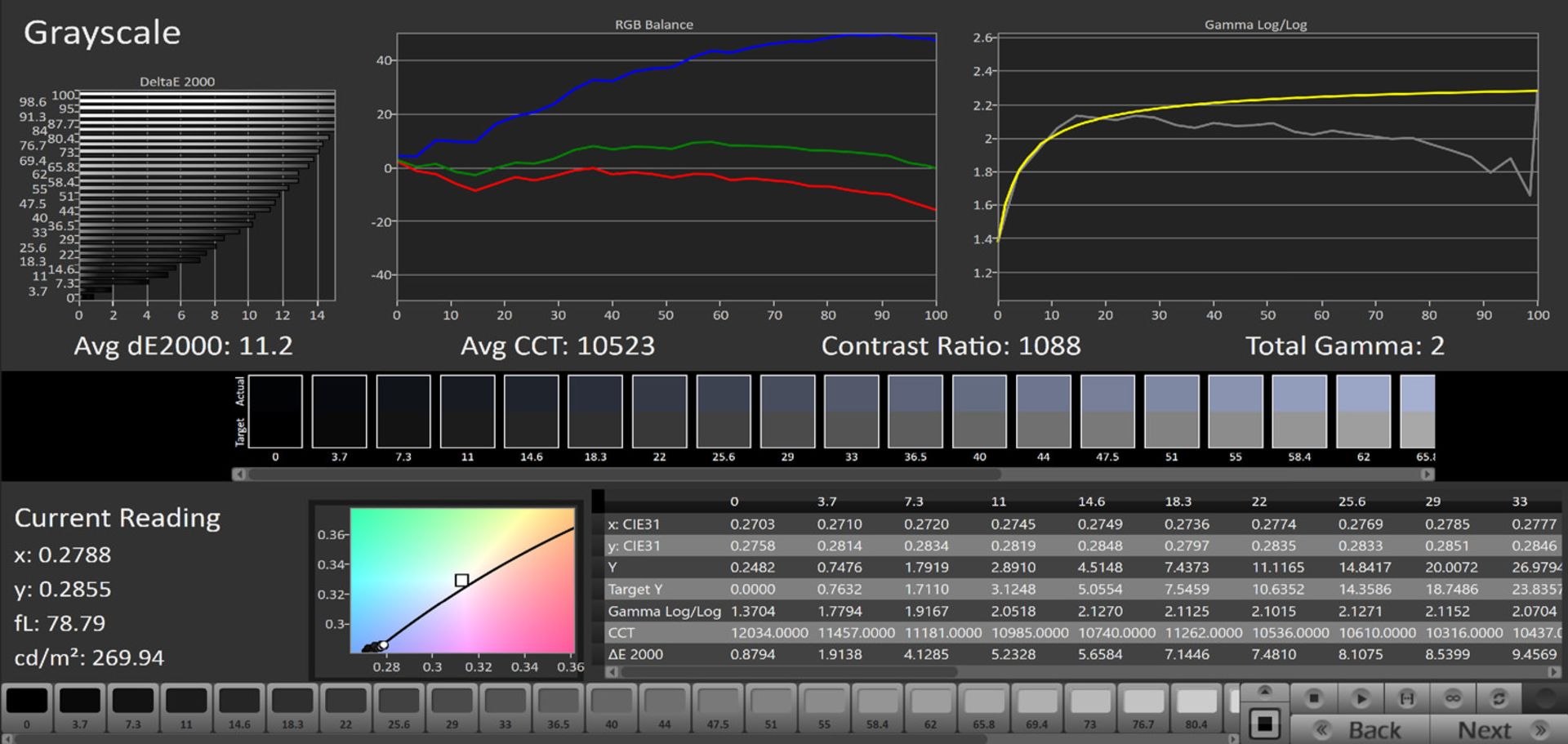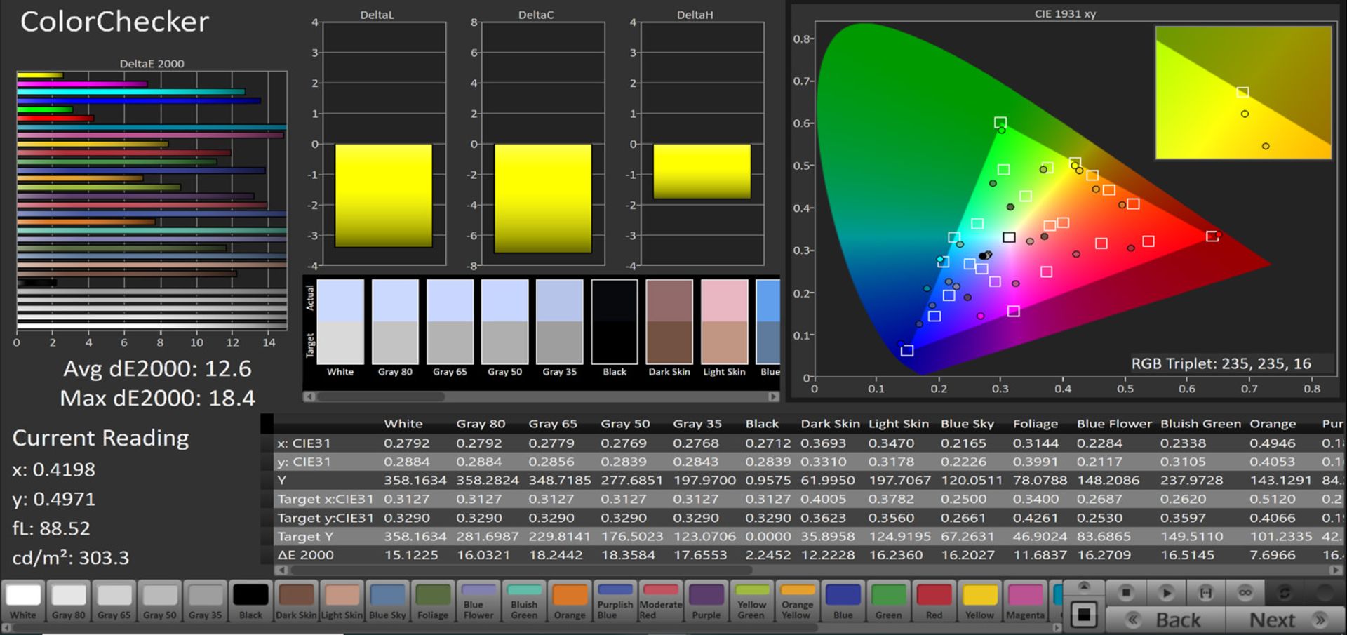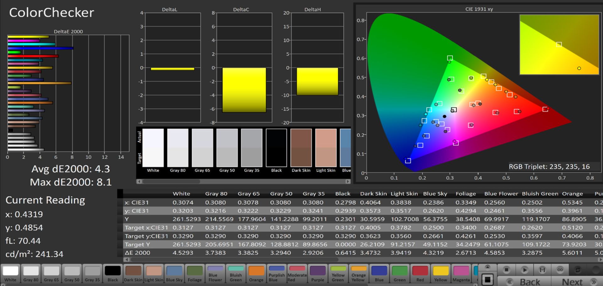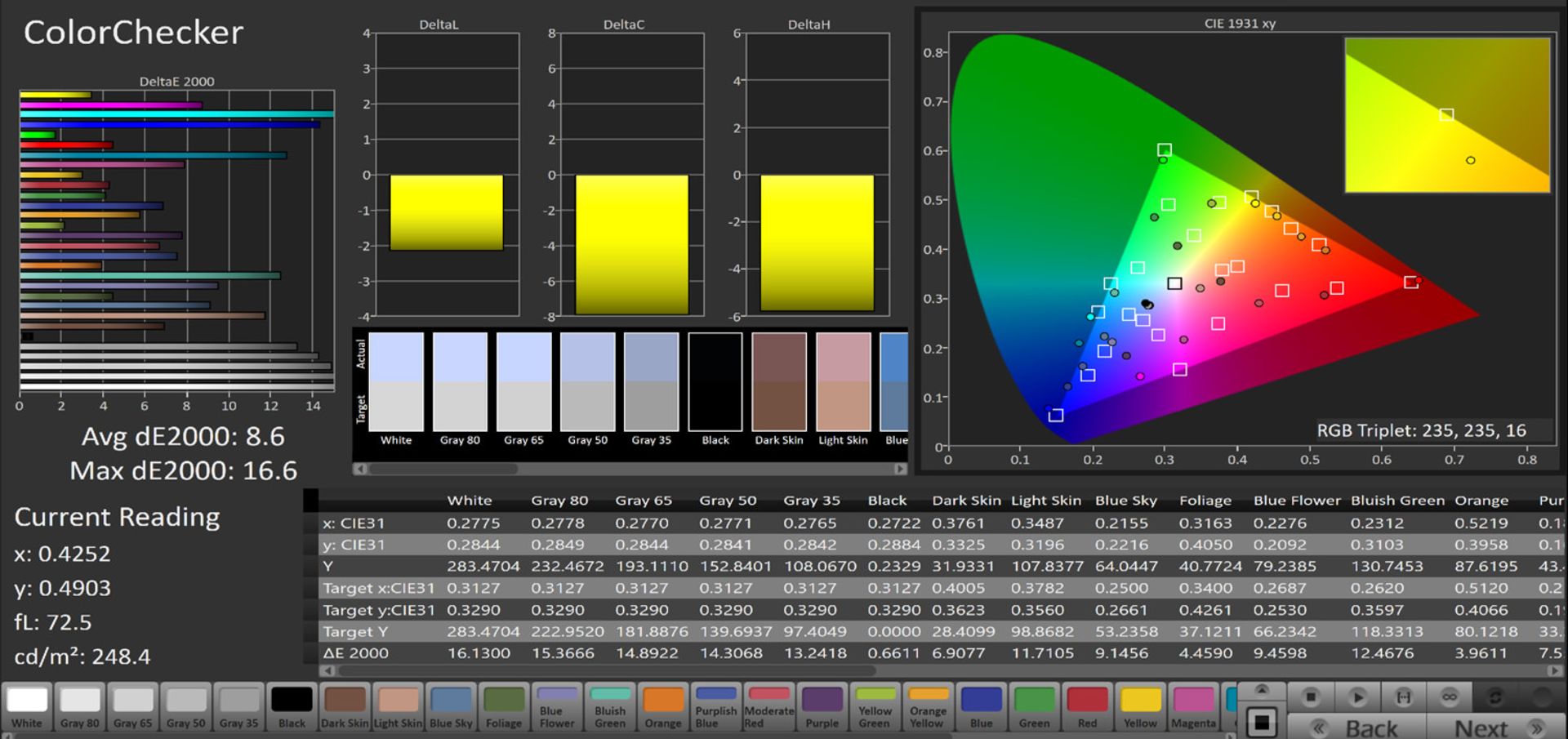 حالت تصویر | پوشش sRGB | پوشش DCI-P3 | میانگین خطا در sRGB (حالت Normal) | میانگین خطا در sRGB (حالت Warm) |